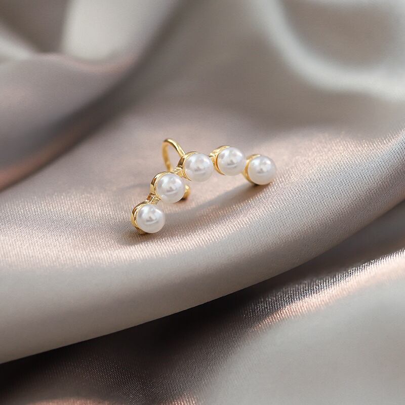 スタイルを格上げするモダンな5連パールのイヤーカフです。