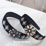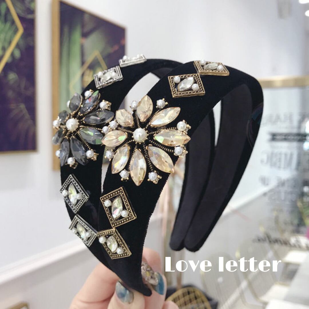 アンティークフラワービジューカチューシャ 太め 韓国ヘアアクセサリー