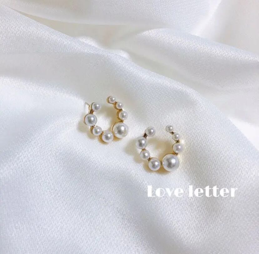 8連パールリングピアス ゴールド 韓国 アクセサリー