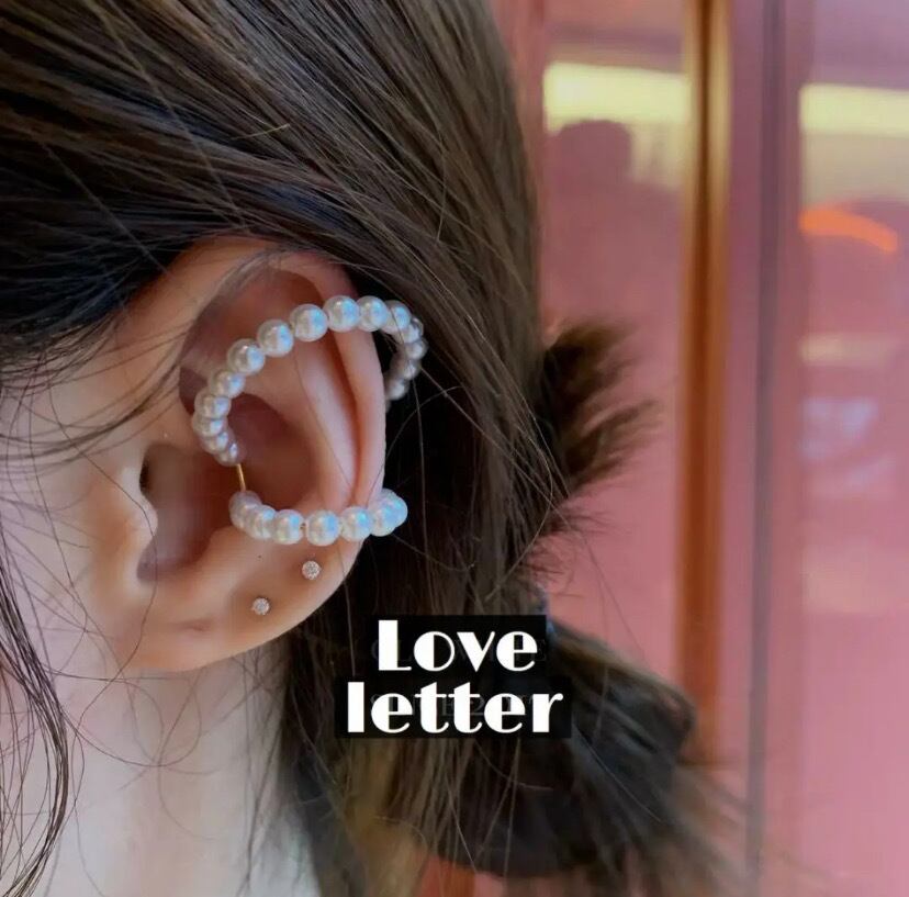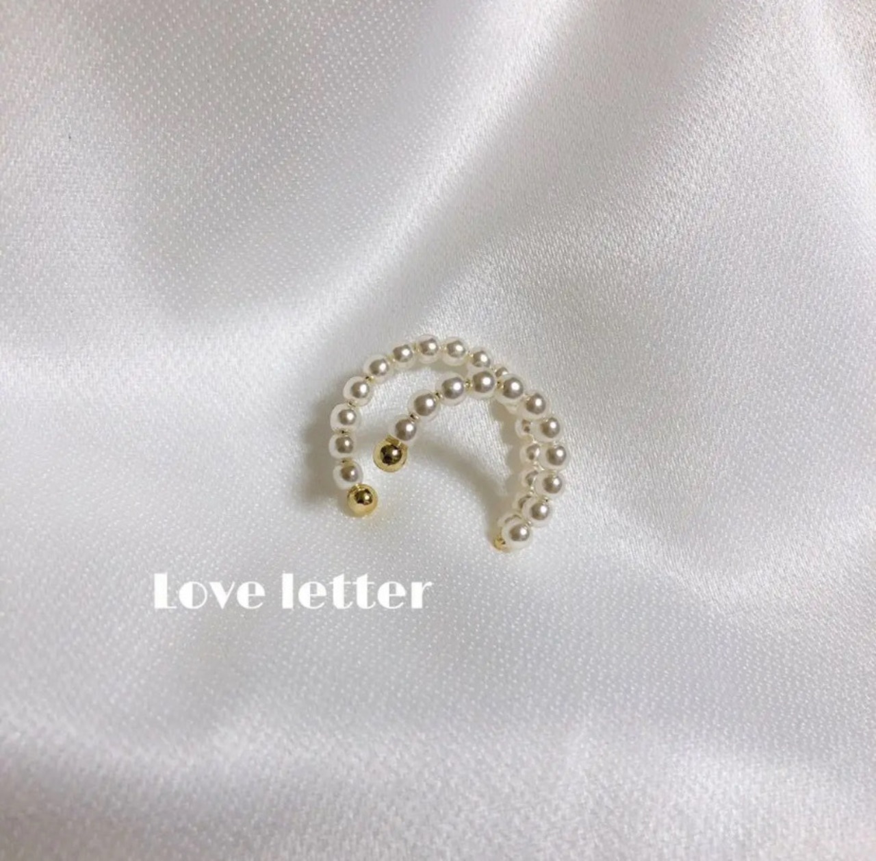 ホワイト2連パールイヤーカフ リングカフ イヤリング 韓国 アクセサリー
