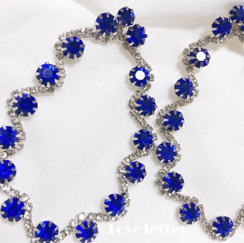 サファイアブルーのストーンとシルバービジューで肌色を美しく魅せてくれます✨