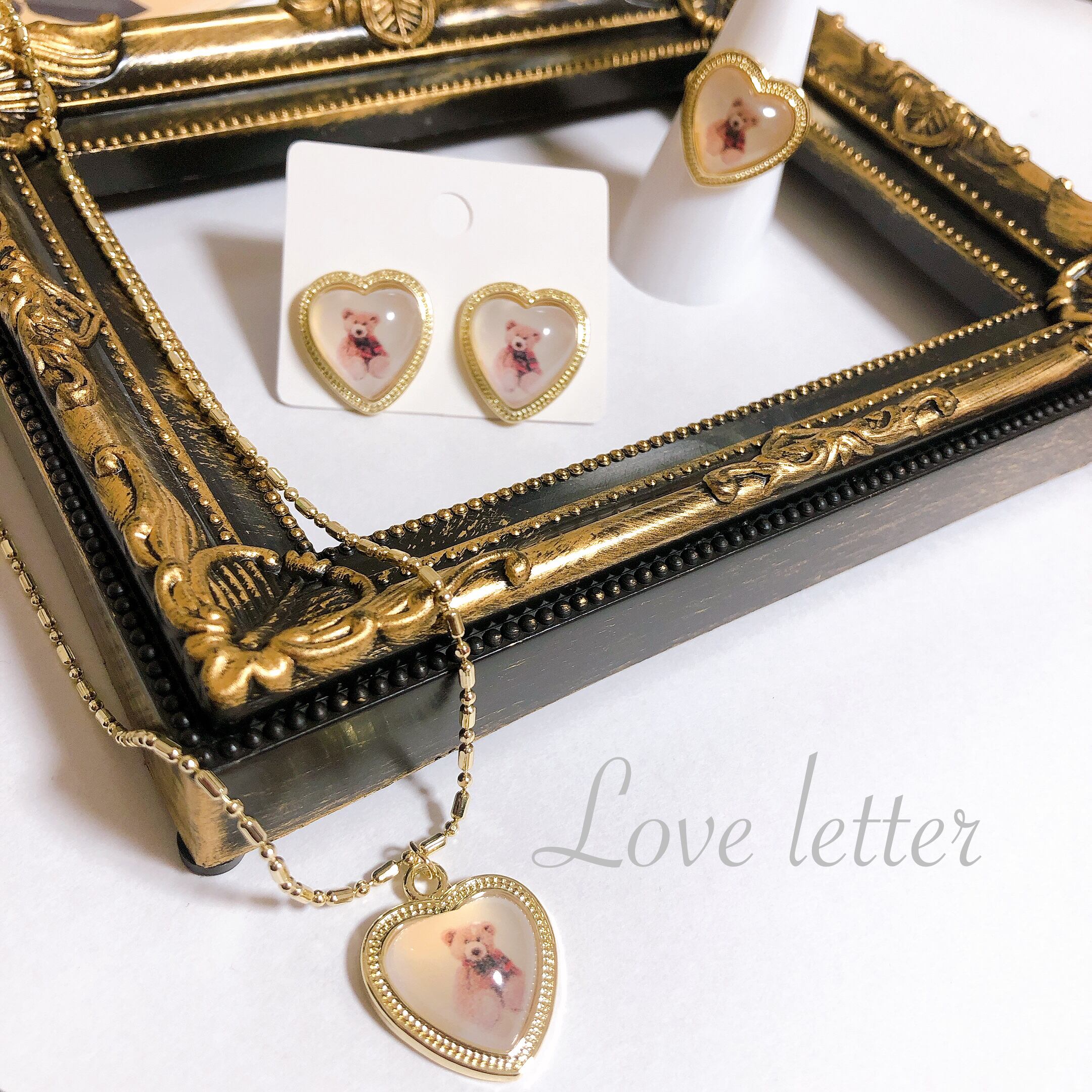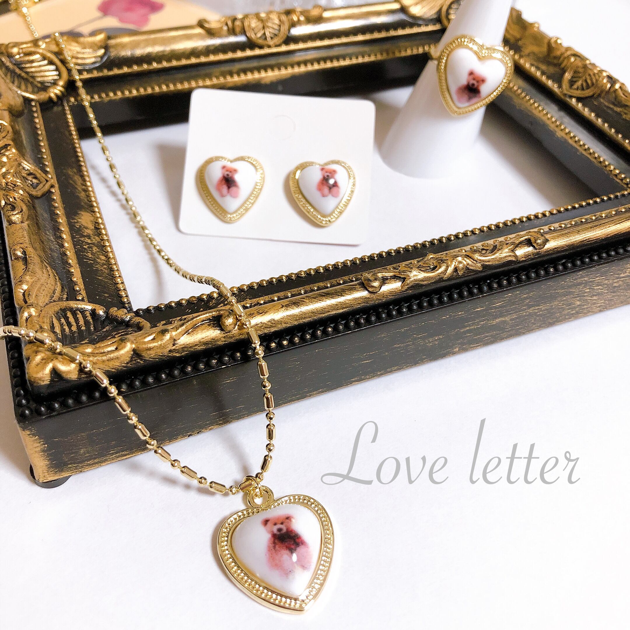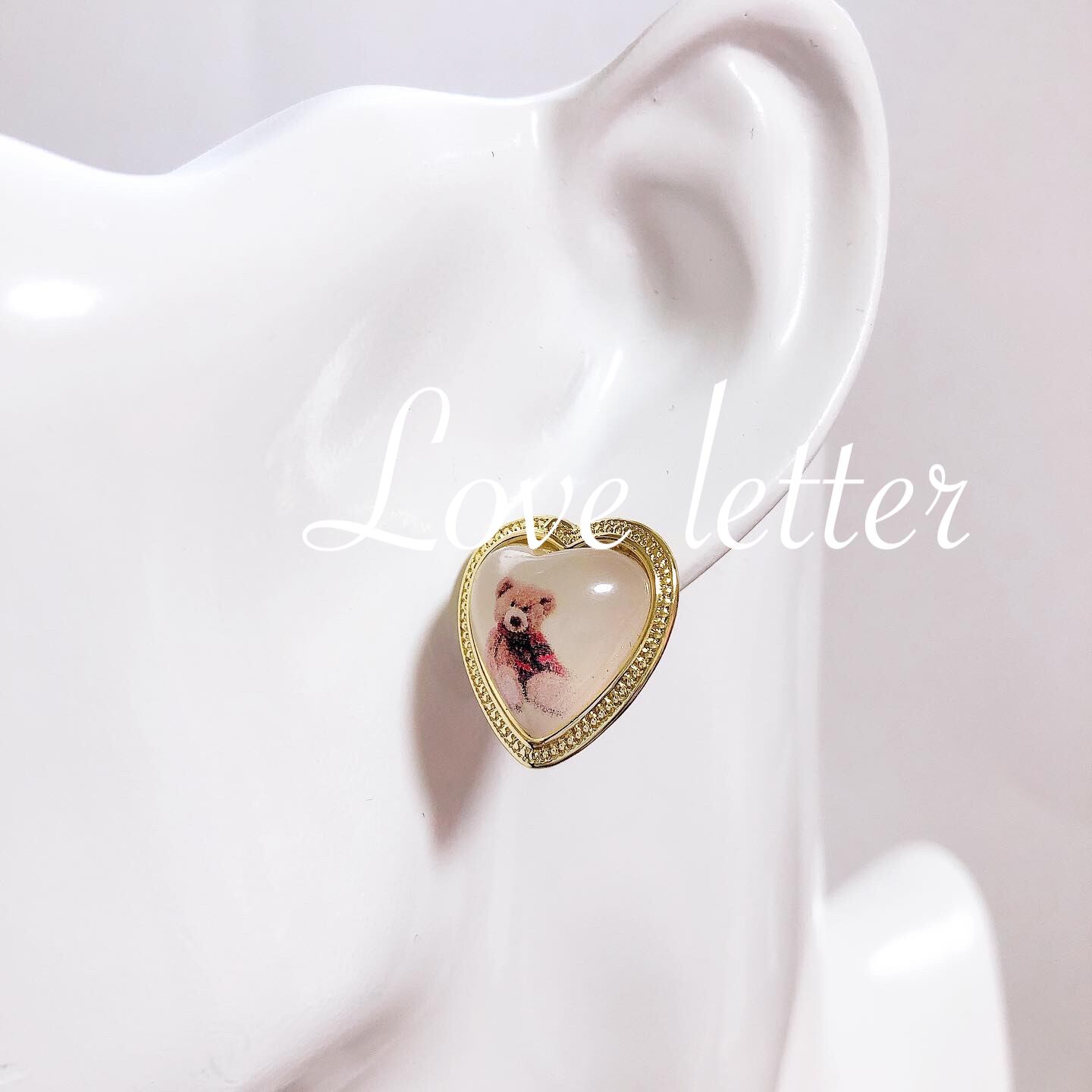 テディベアハートピアス ホワイト クリア 韓国 量産型 地雷 クマ ゆめかわ アクセサリー
