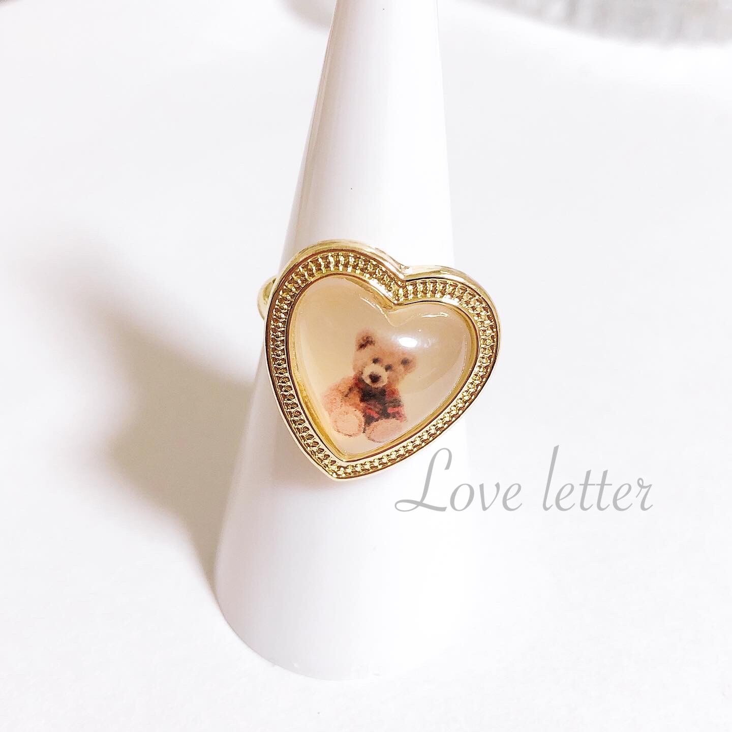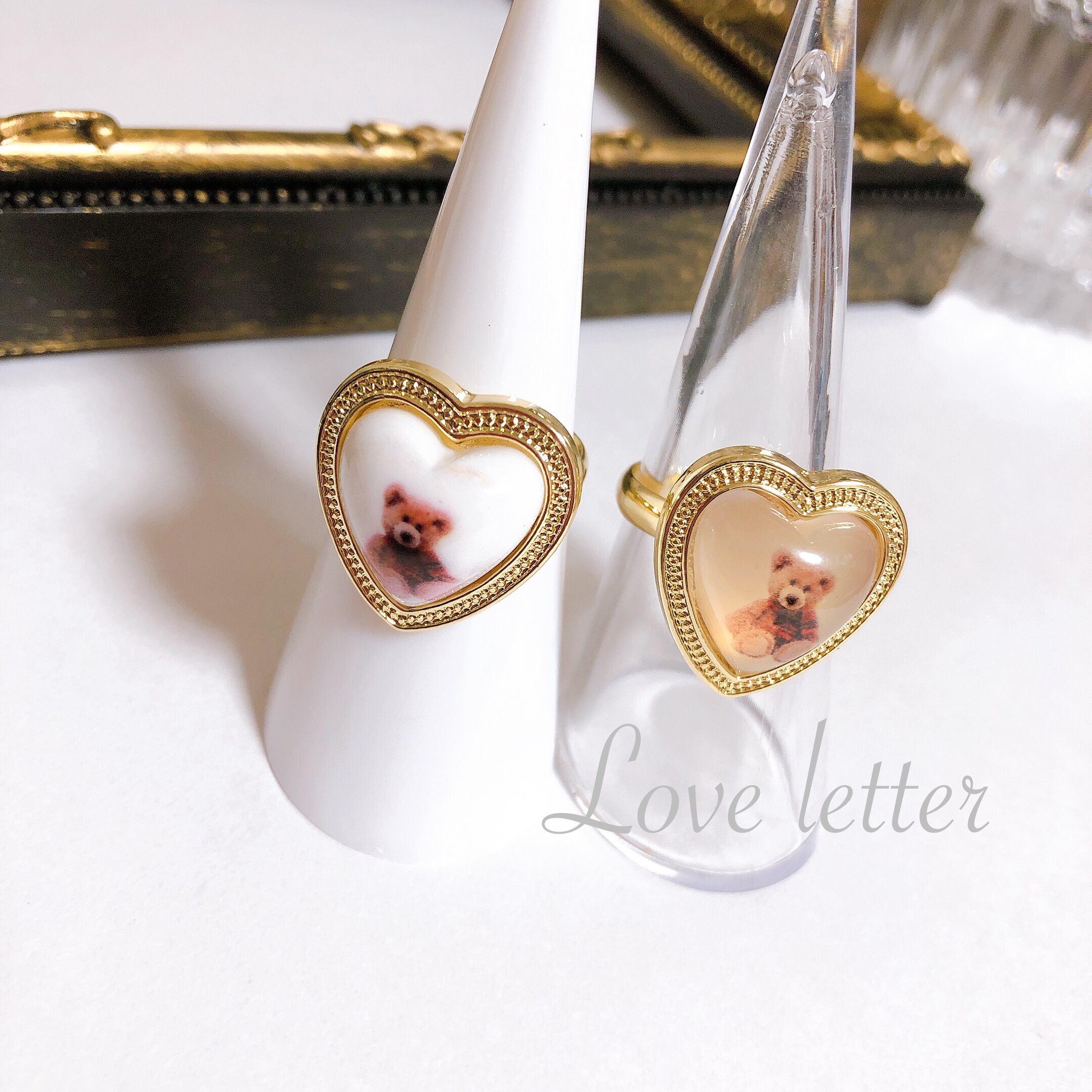 テディベアハートリング ホワイト クリア 韓国 量産型 地雷 クマ ゆめかわ アクセサリー