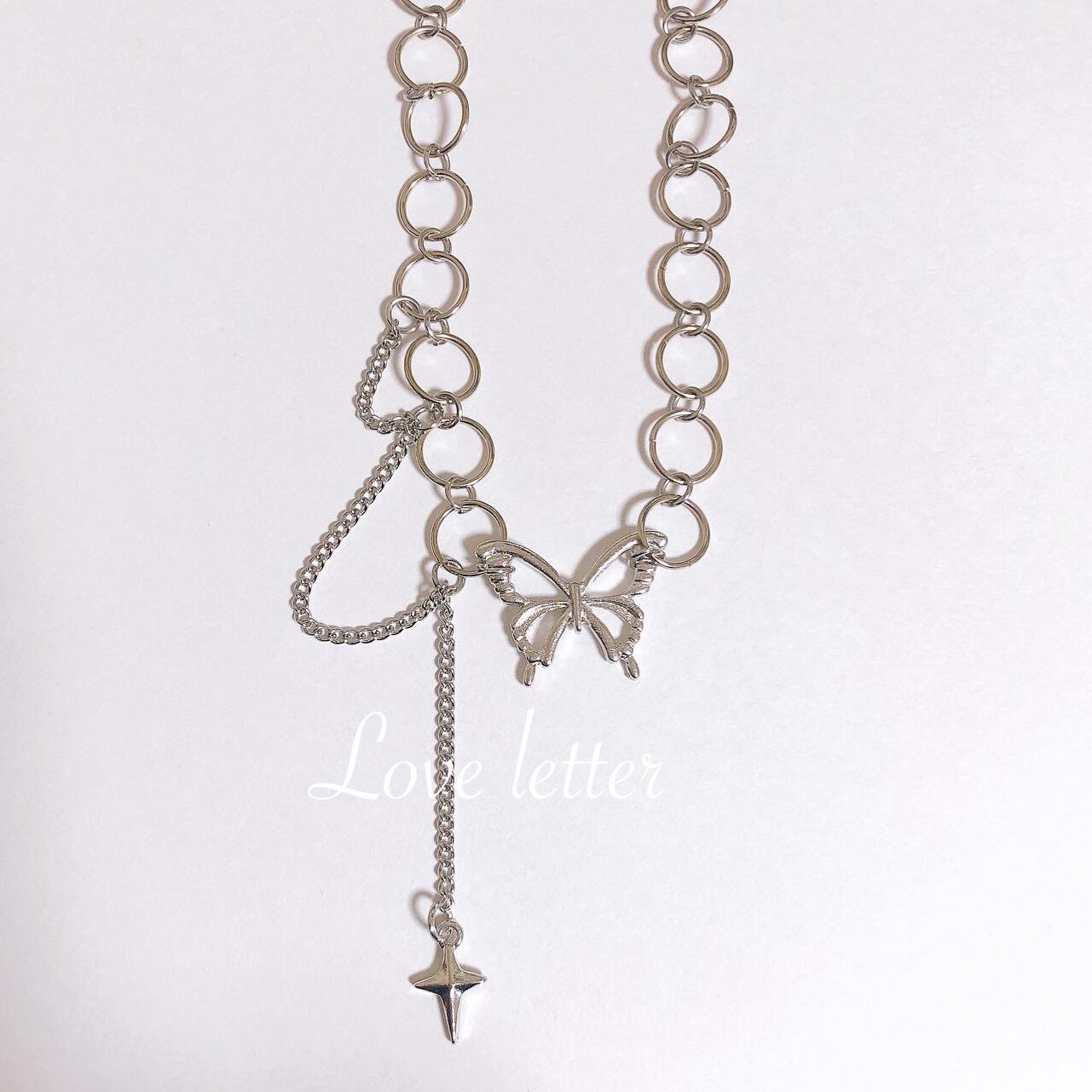 バタフライフープチェーンチョーカーネックレス 韓国 蝶々量産型 地雷