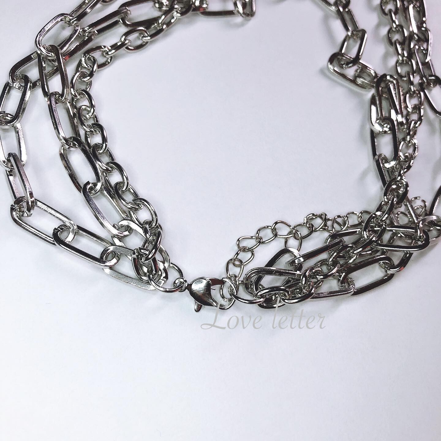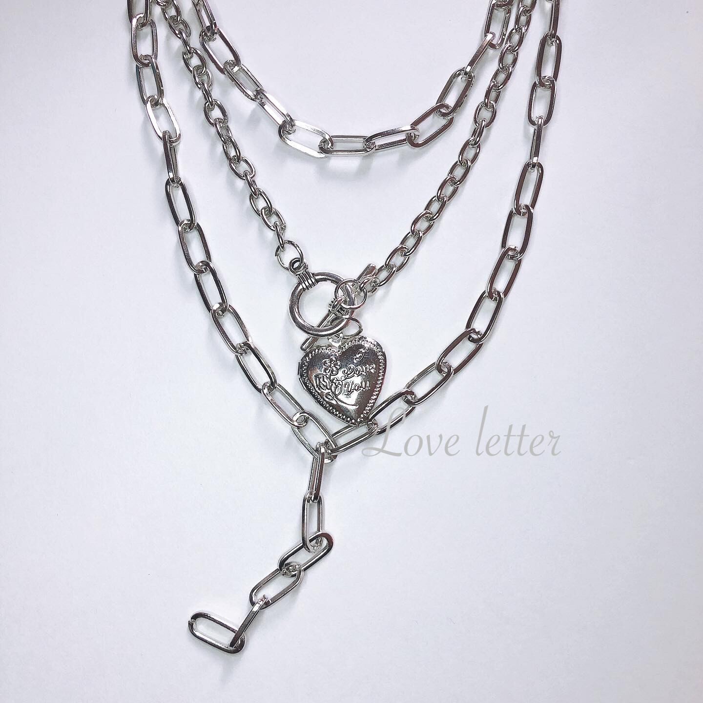 シルバー3連チェーンチョーカーハートネックレス 韓国 量産型 地雷パンク アクセサリー