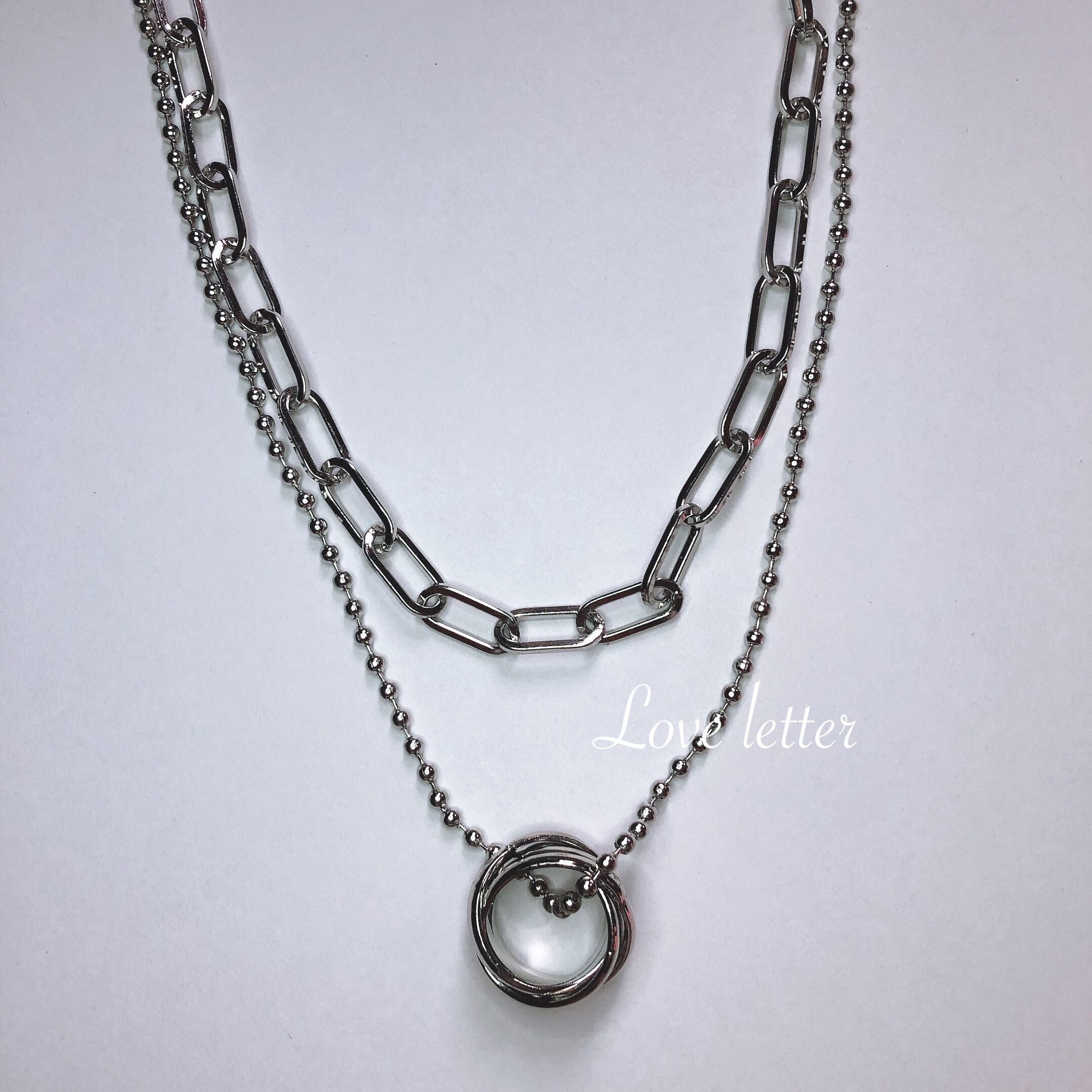 2点重ね付け風のボールチェーンリングチョーカーネックレスです♫