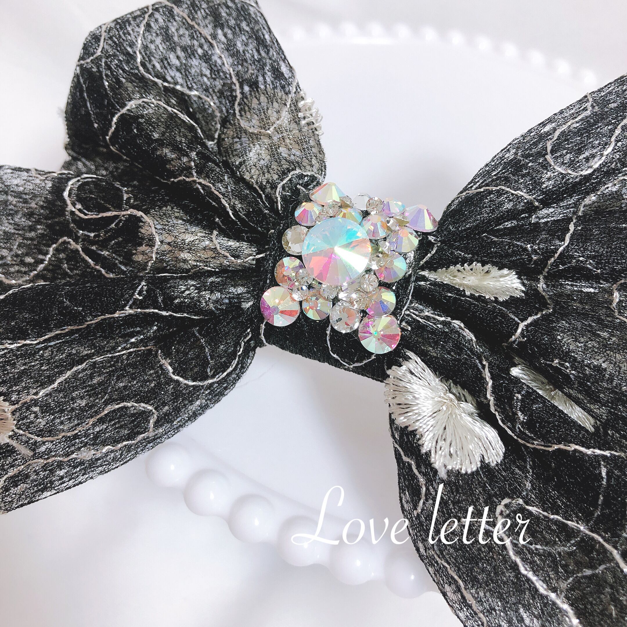 フラワーレースビジューリボンバレッタ 韓国 量産型 地雷 ヘアアクセサリー