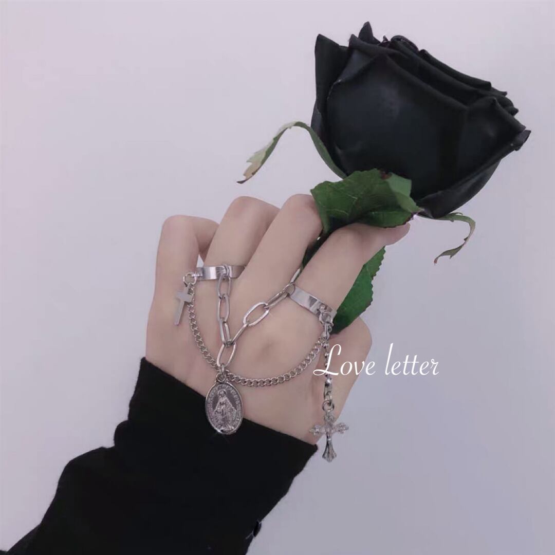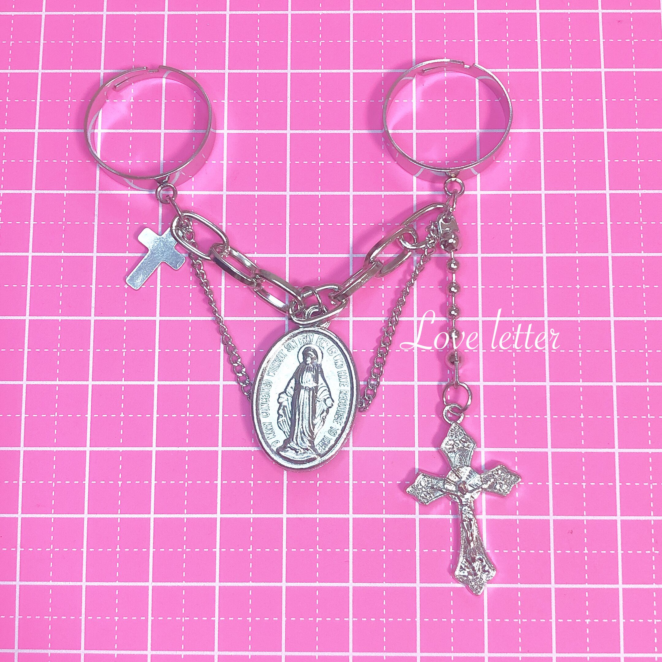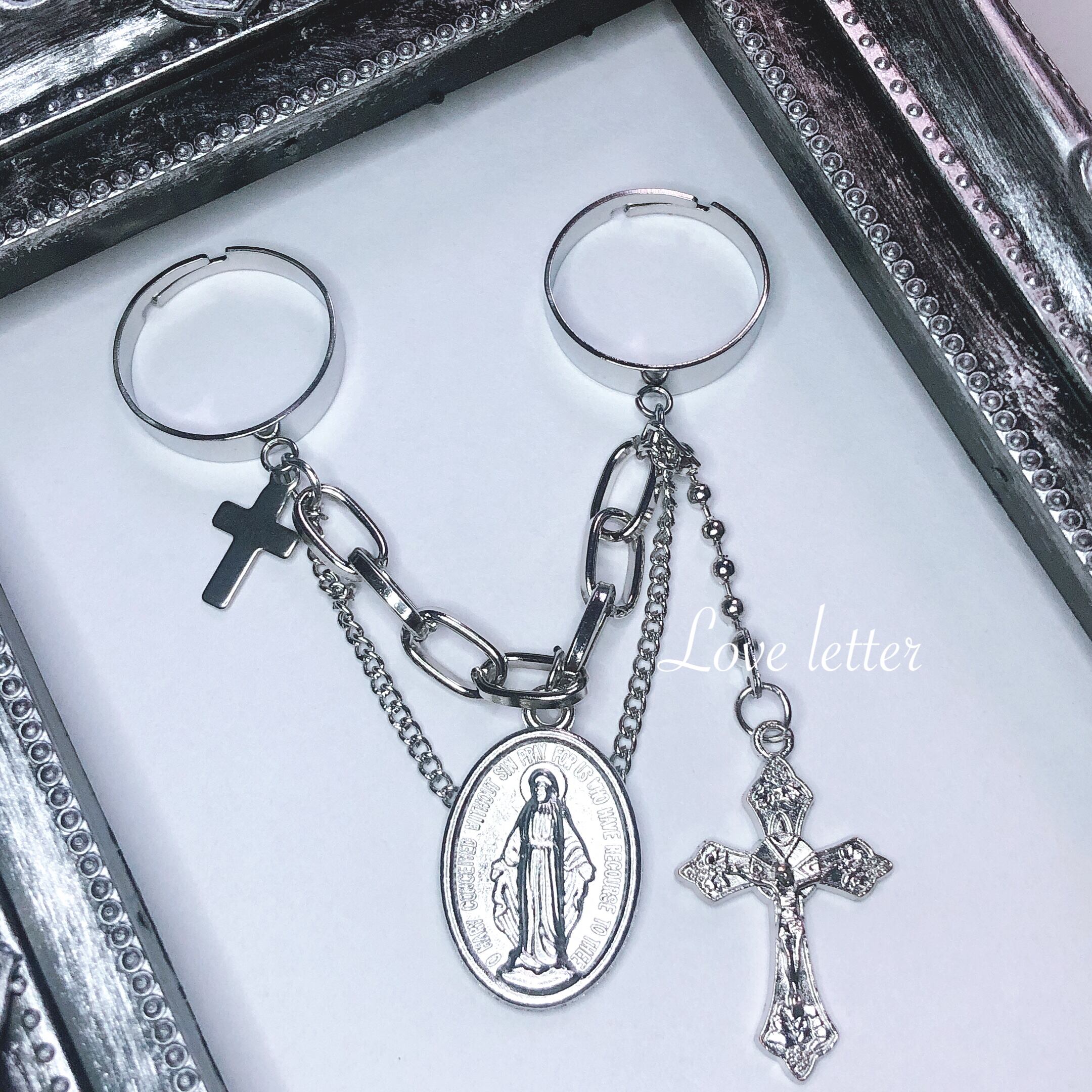 クロスパーツやマリア様モチーフにチェーンが連なったリングの2点setです♡