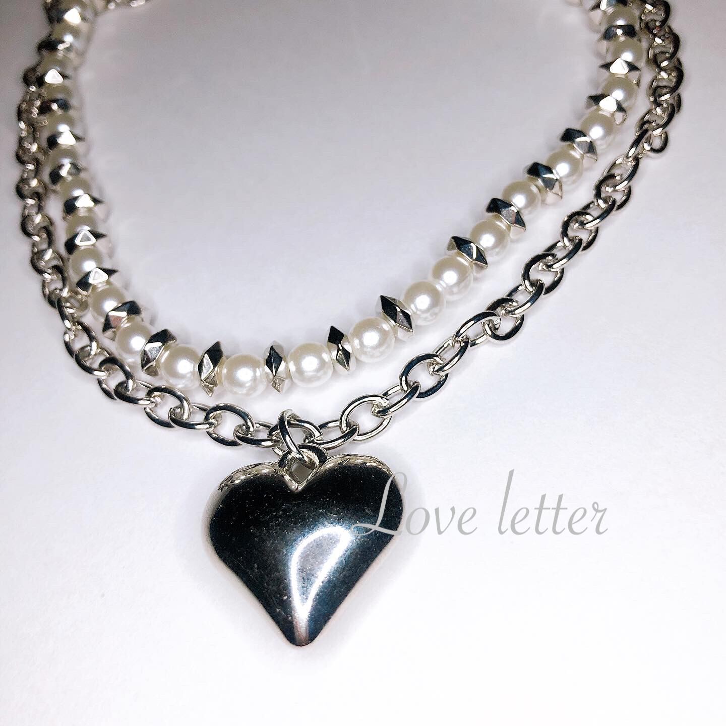 存在感抜群のシルバーチェーンにパールが交差に連なったチョーカーにシルバーハートのネックレスの2点setです♡