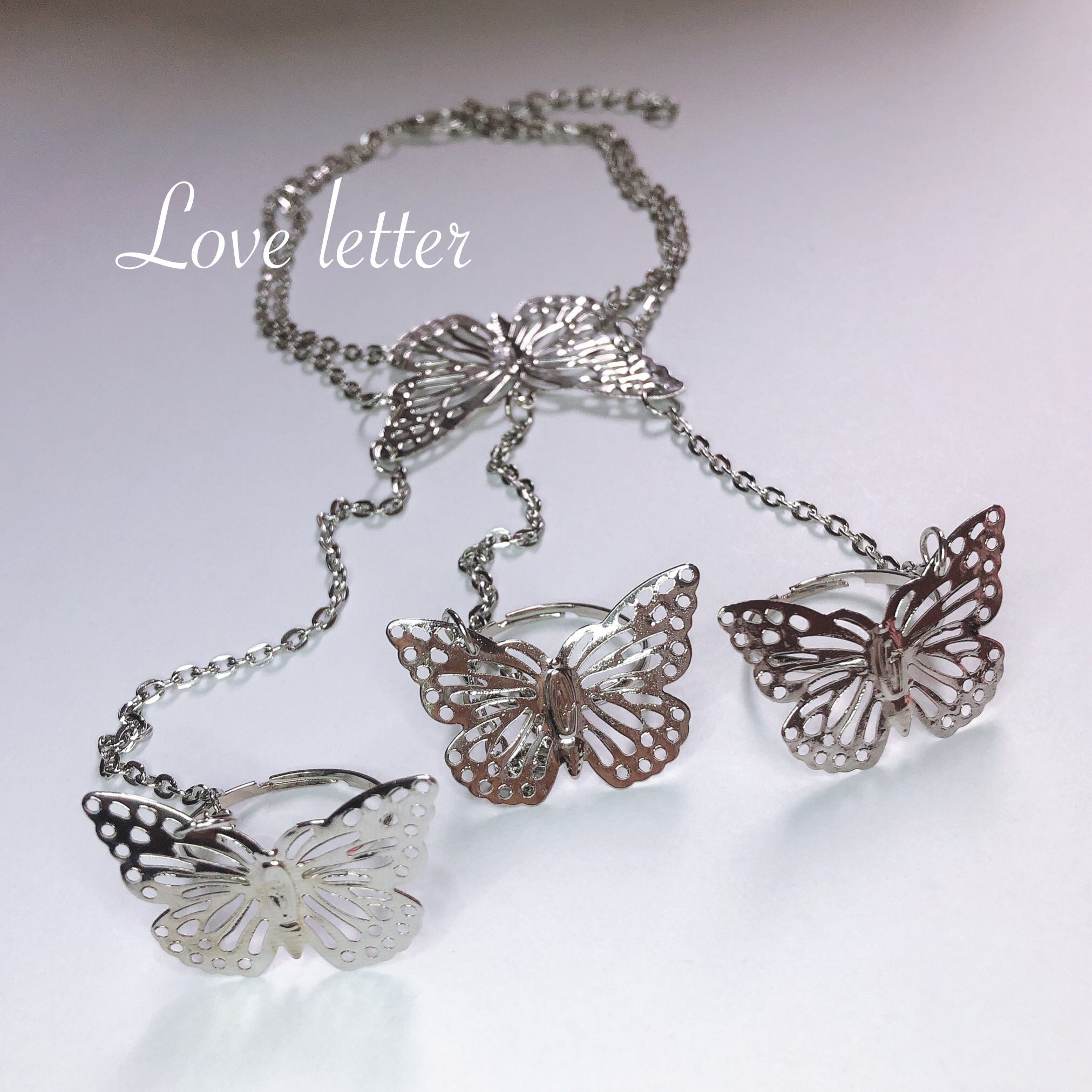 3連のバタフライリングにチェーンが連なったブレスレットのsetです♡