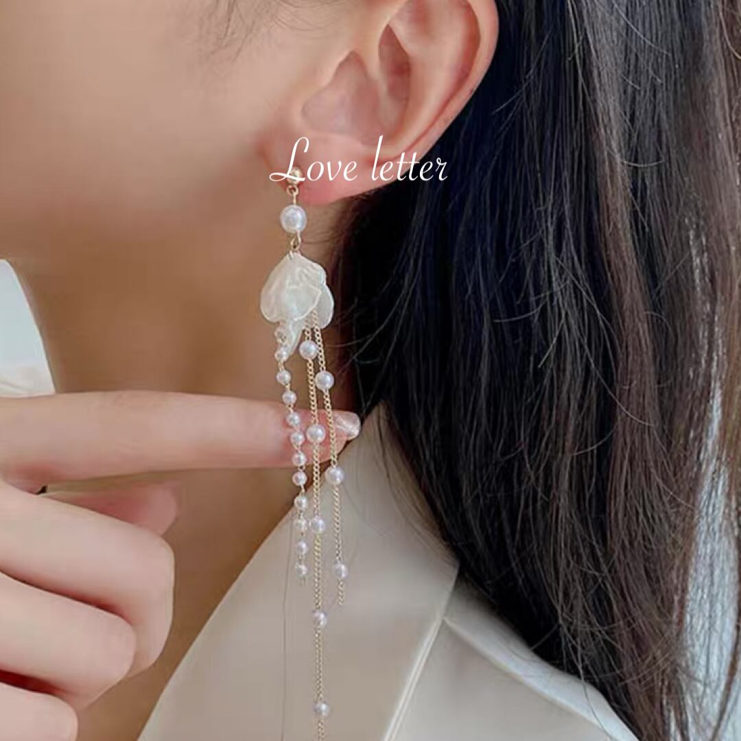マーメイドシェルパールビジューロングピアス イヤリング 韓国 人魚姫 アクセサリー