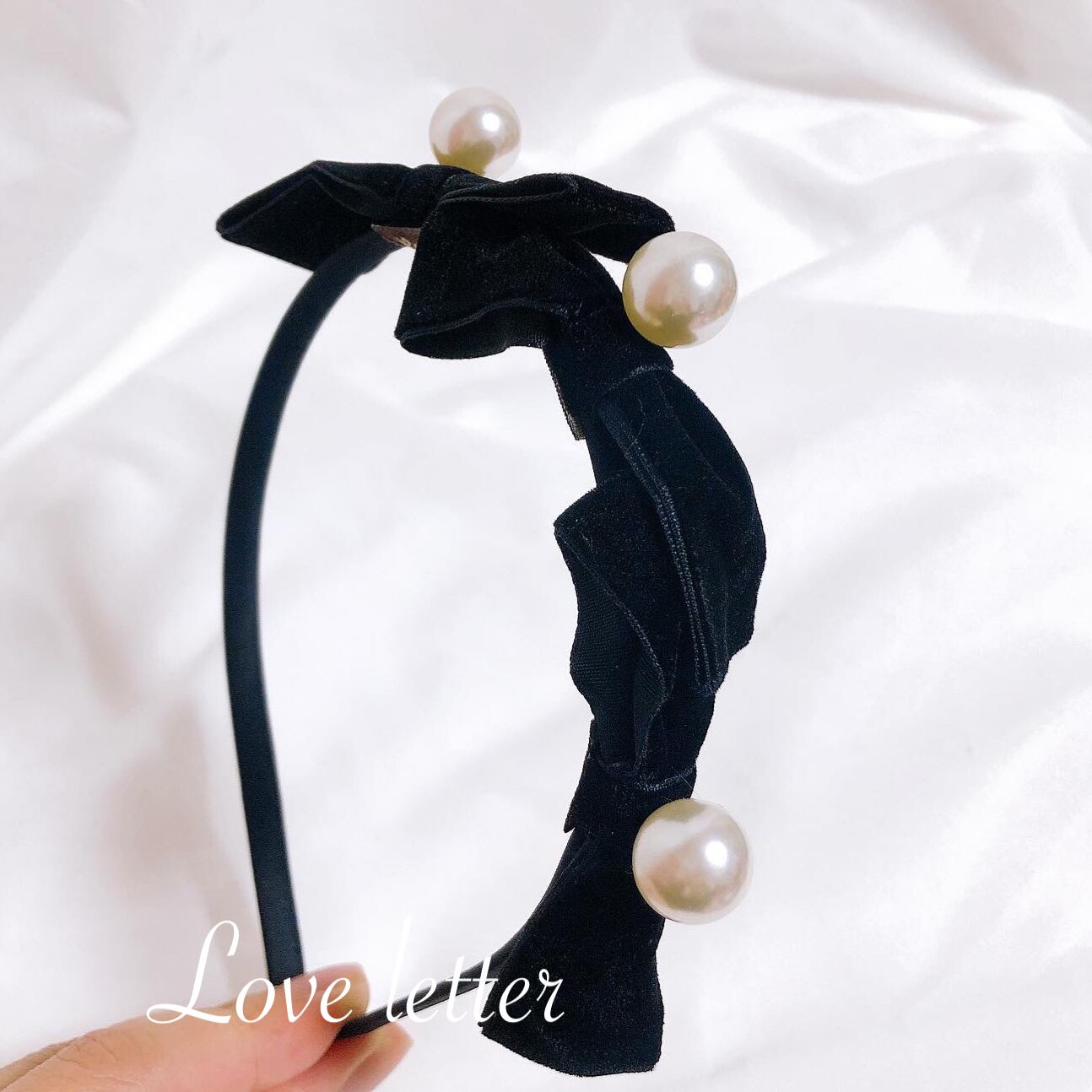 パール3連ベロアリボンカチューシャ 韓国 量産型 地雷 ゆめかわ