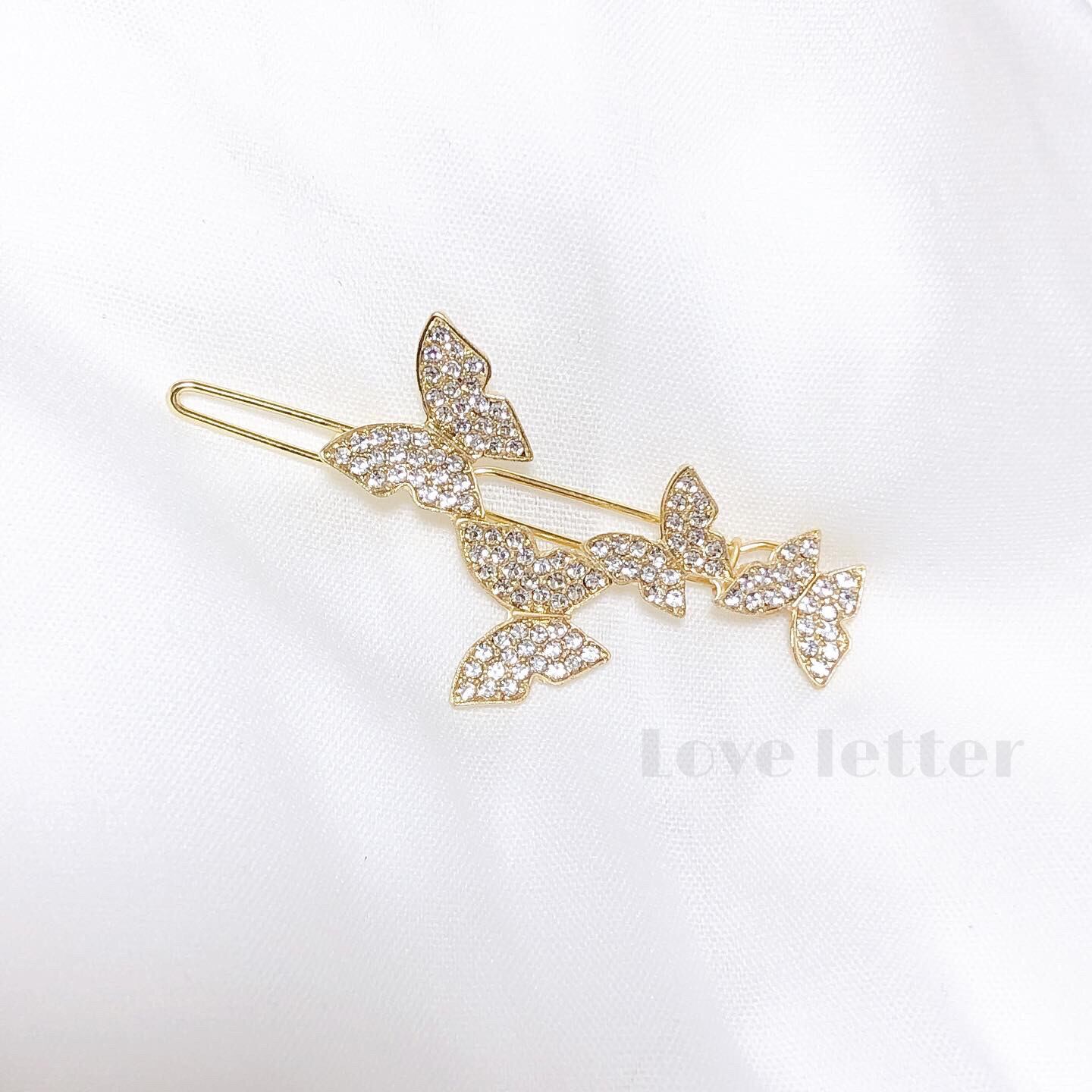 クリスタルストーンバタフライヘアピン ヘアクリップ 韓国 蝶々 量産型 地雷 ヘアアクセサリー