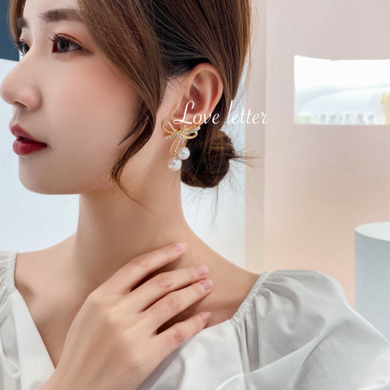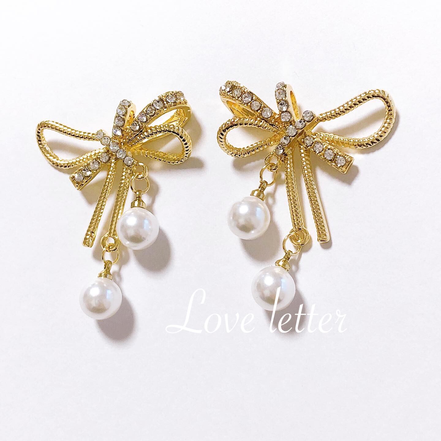 ゴールドビジューパールリボンピアス 韓国 量産型 地雷 ゆめかわ アクセサリー