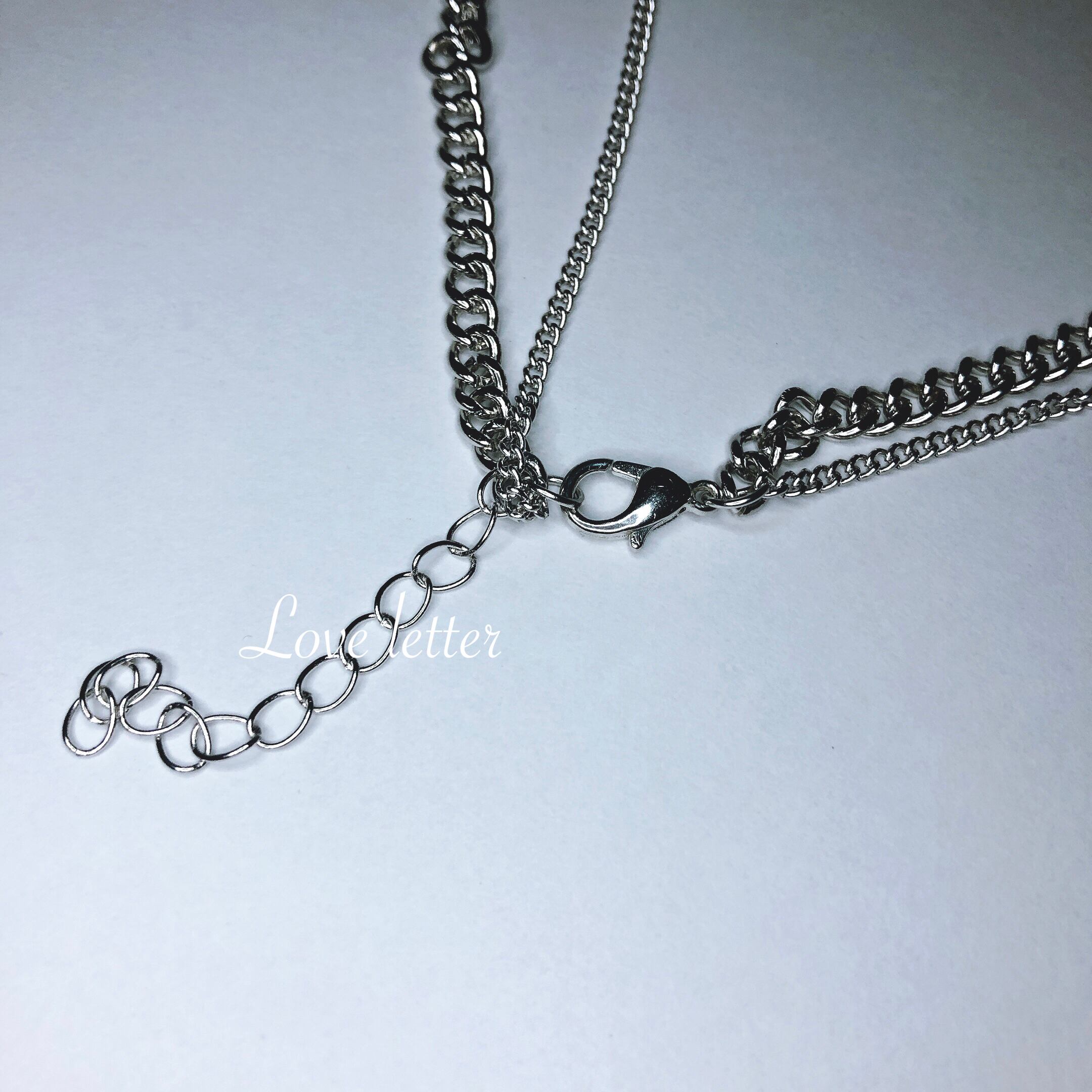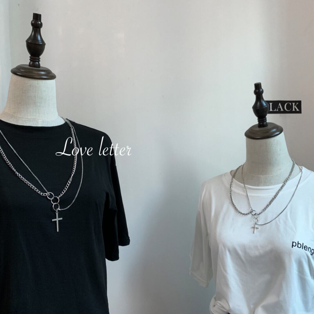 シルバークロス2連チェーンネックレス 韓国 十字架 地雷 パンク アクセサリー