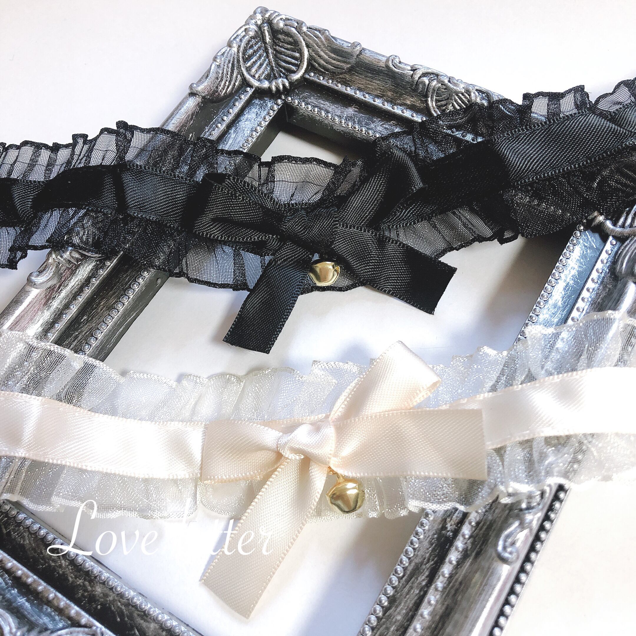 チュールリボンベルチョーカー ブラック ベージュ 韓国 量産型 地雷 病み