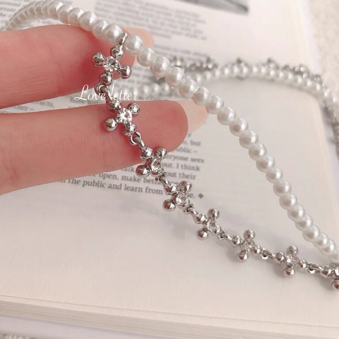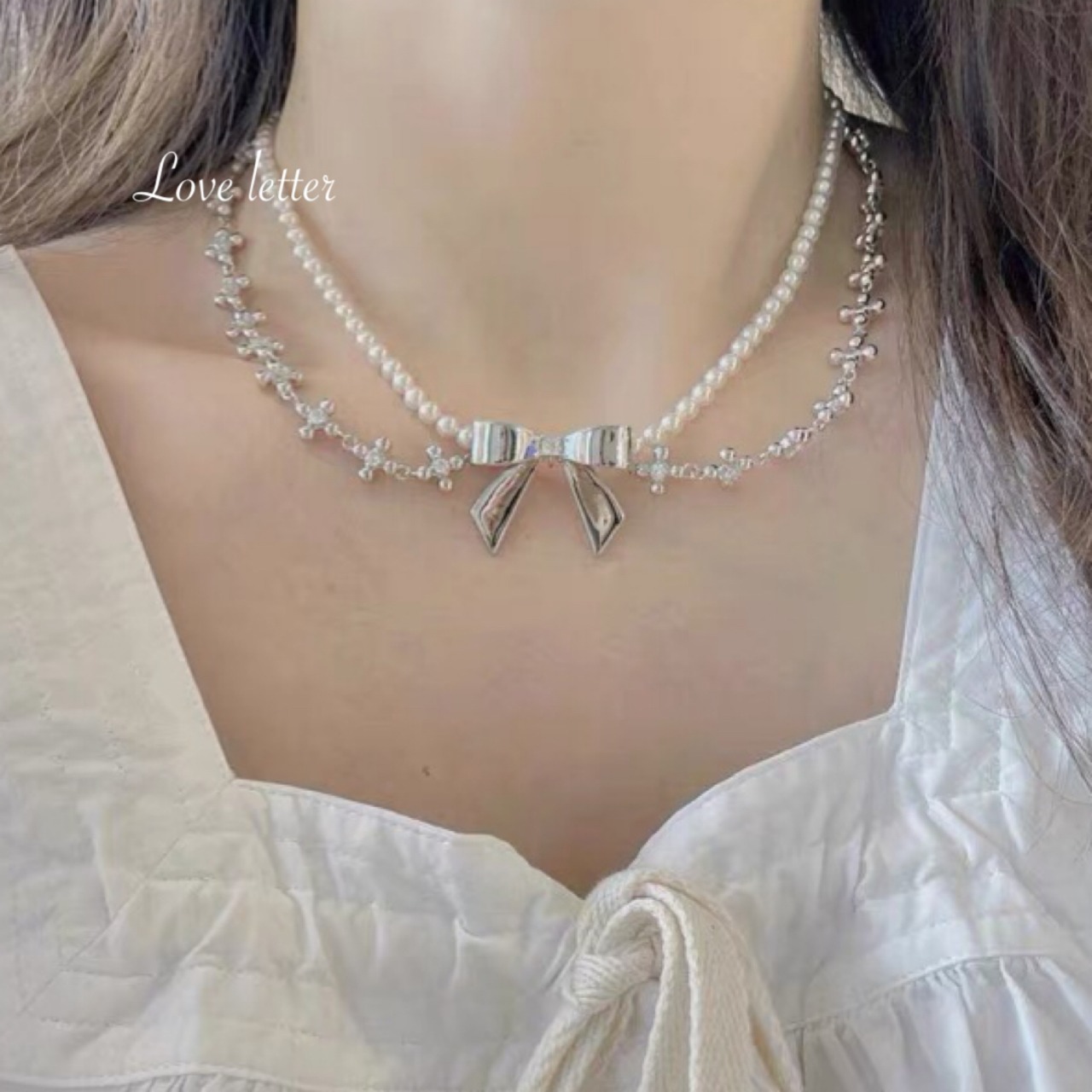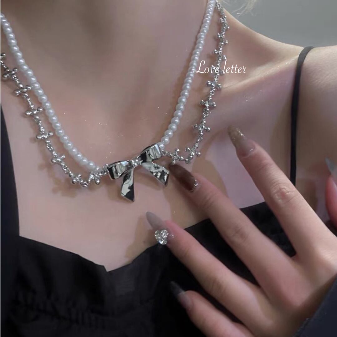 パールリボンビジュー2連チョーカーネックレス 韓国 量産型 地雷