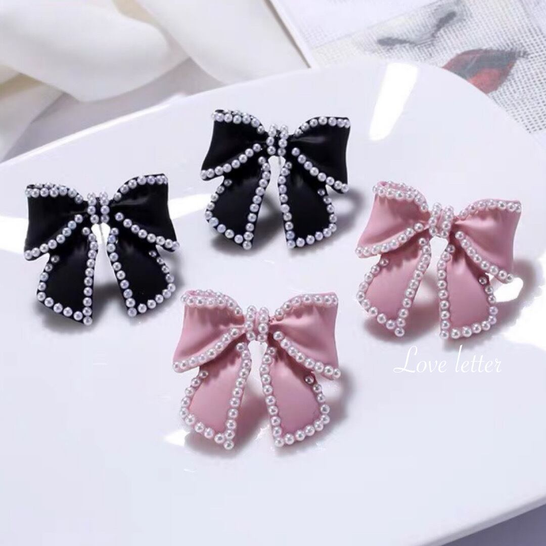 量産型リボンピアス ブラック ピンク 韓国 地雷 アクセサリー