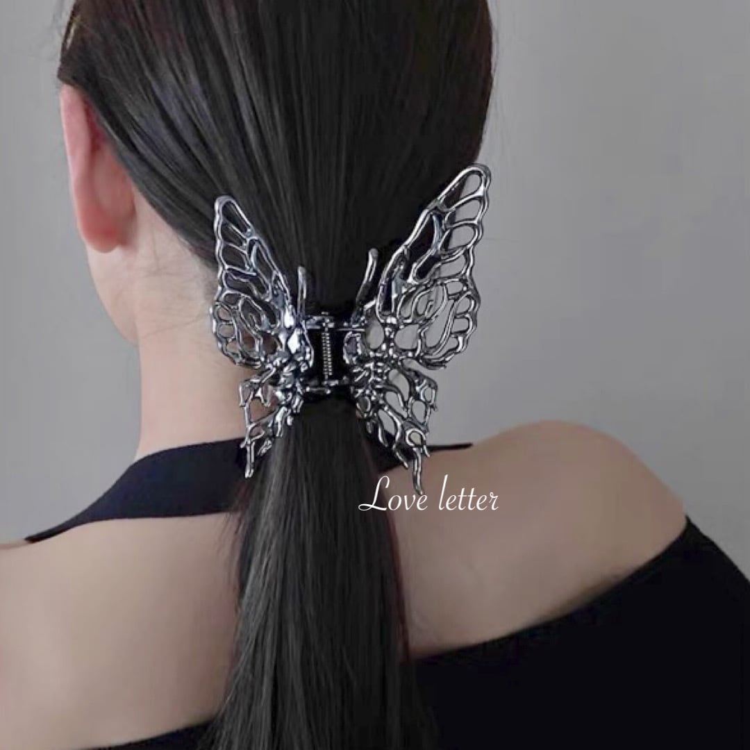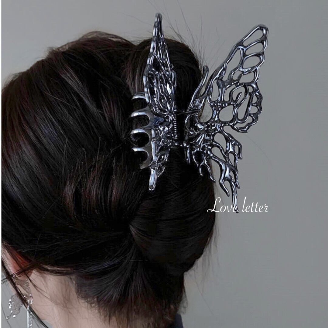 シルバーバタフライバンスクリップ 韓国 蝶々 ナビ 量産型 地雷