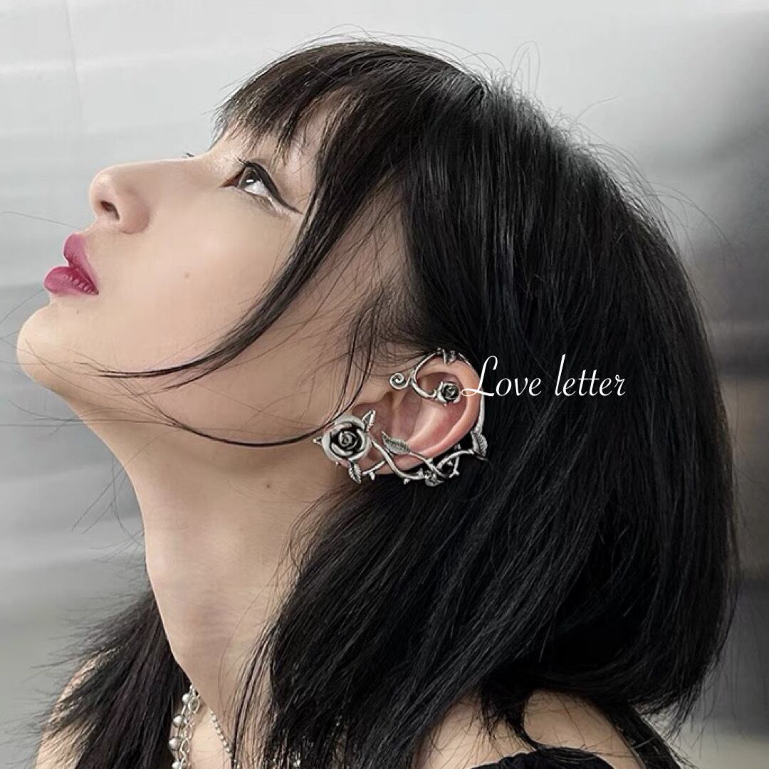 アンティークシルバーローズイヤーカフ片耳ピアス イヤリング 韓国 薔薇 パンク