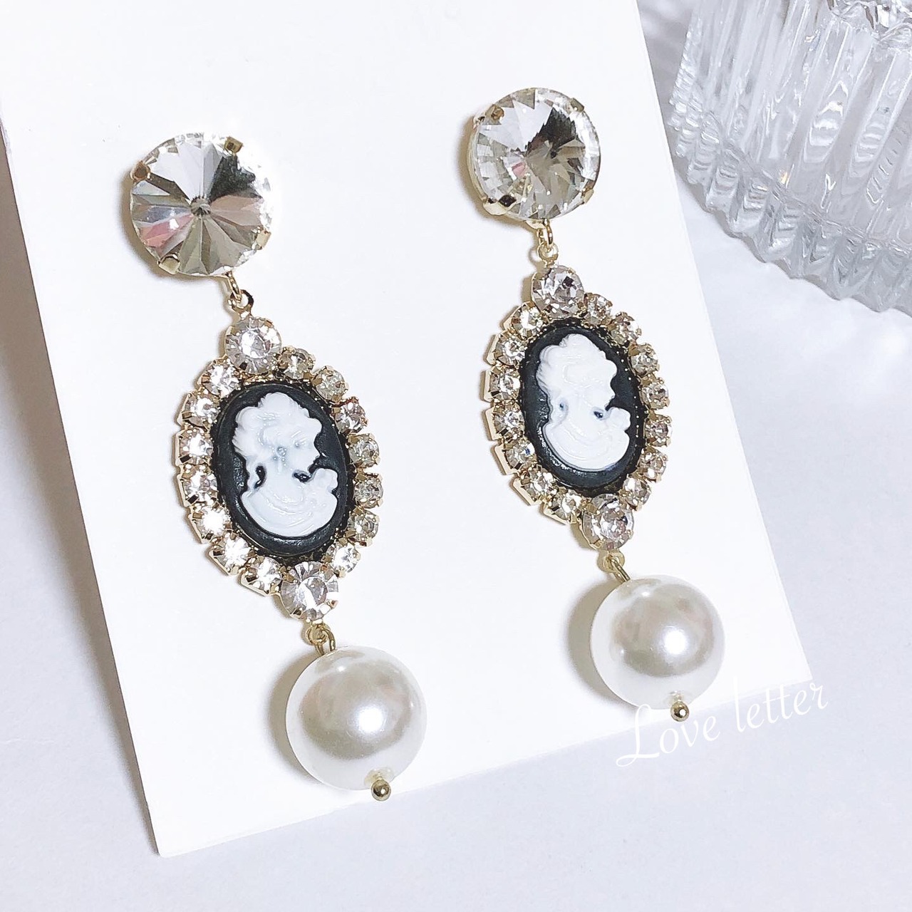 アンティークカメオパールピアス 韓国 量産型 地雷 KPOP BLACKPINKジェニ twiceミナ着用