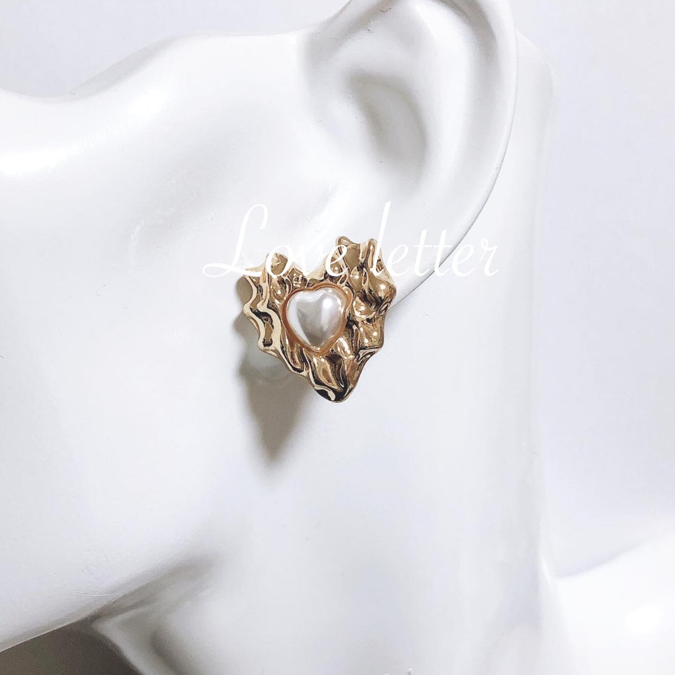 アンティークゴールドハートパールピアス イヤリング 韓国 量産型 地雷