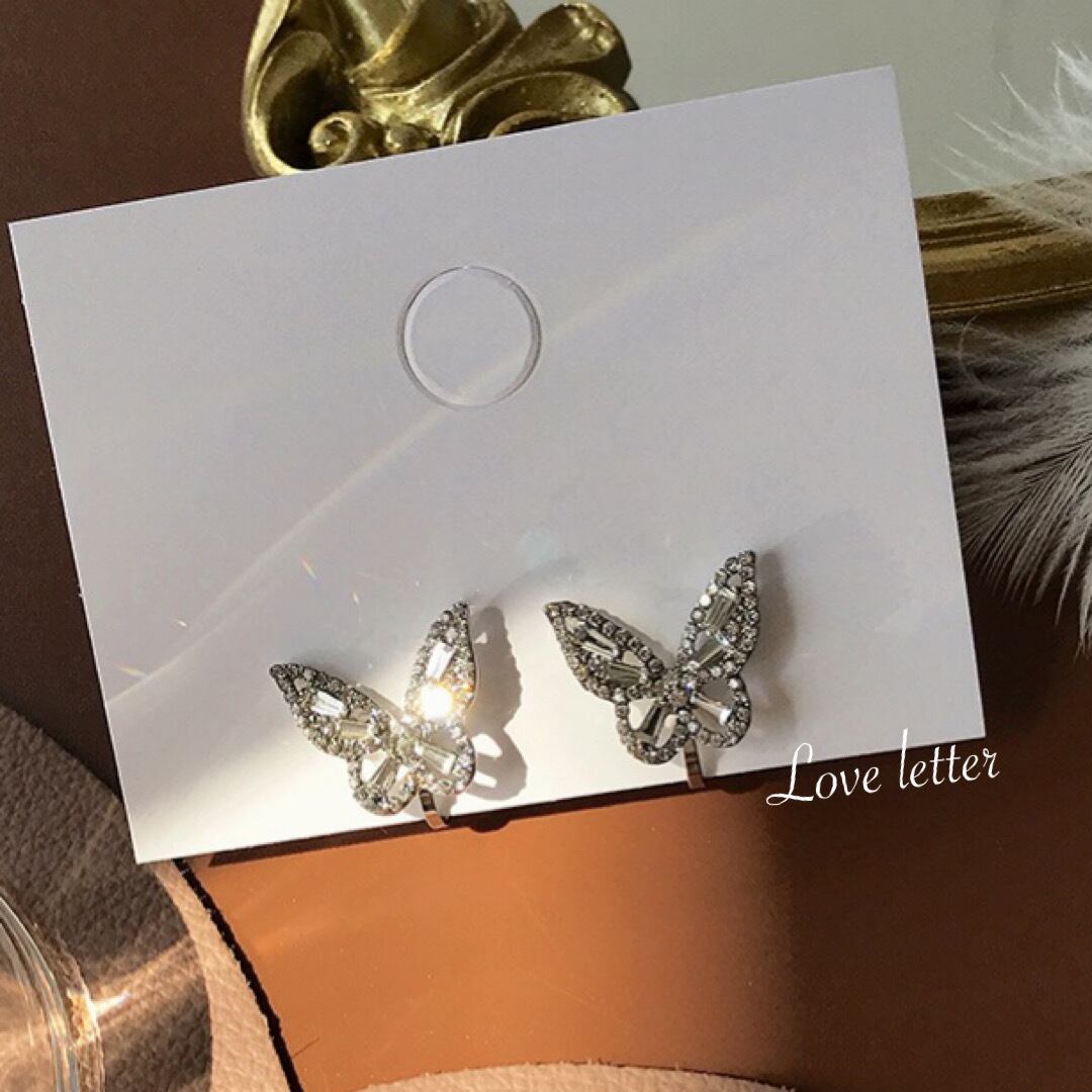 シルバービジューバタフライピアス イヤリング 韓国 ナビ蝶々 量産型 地雷