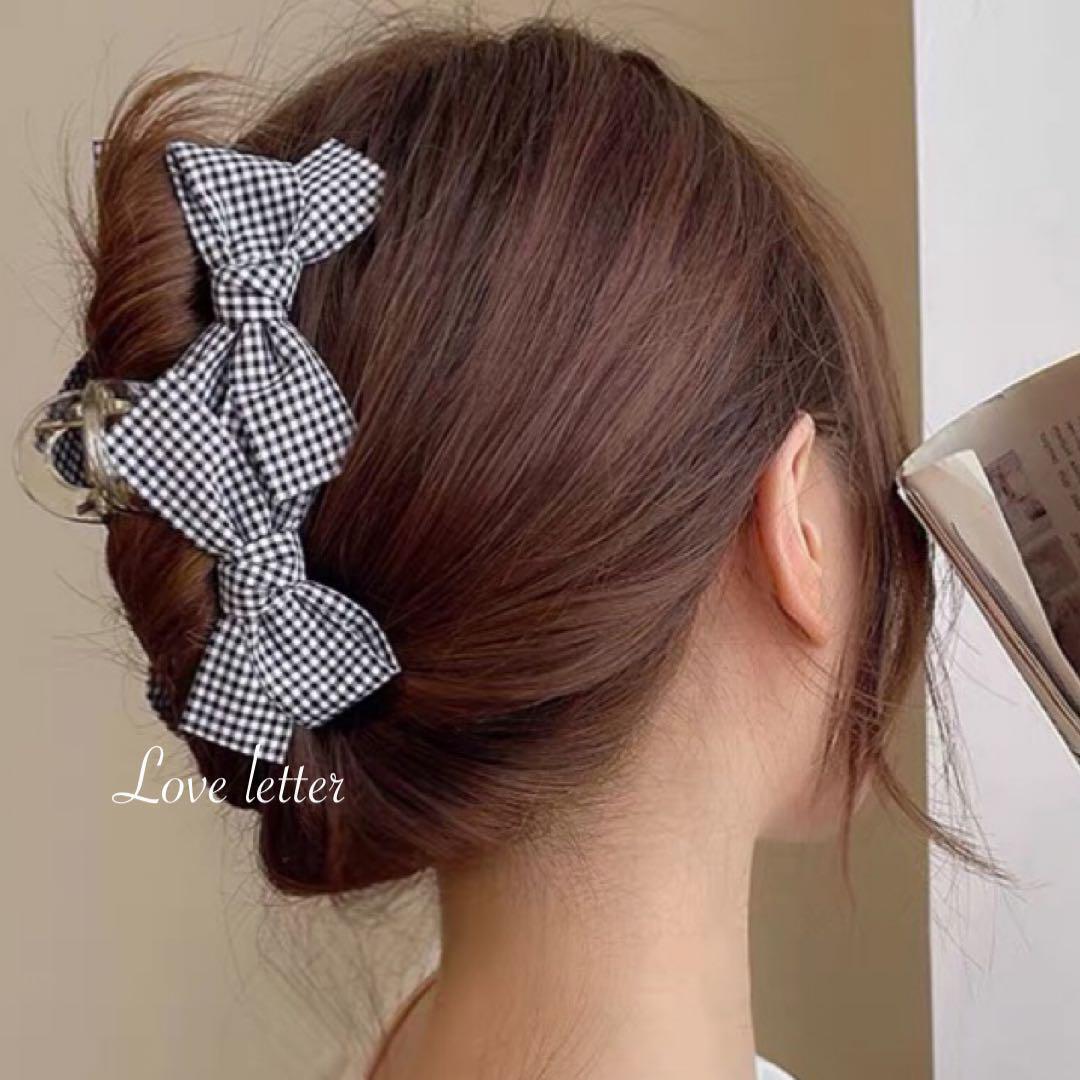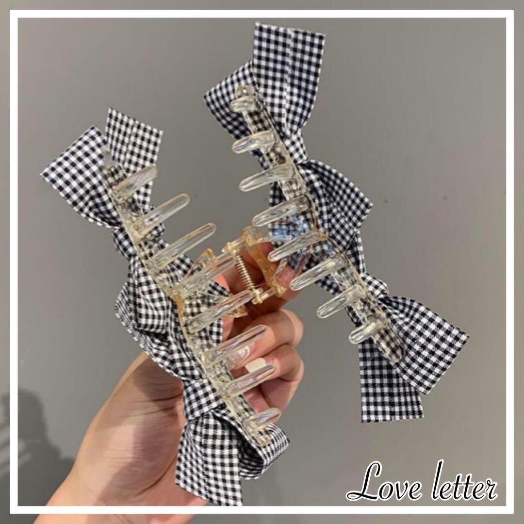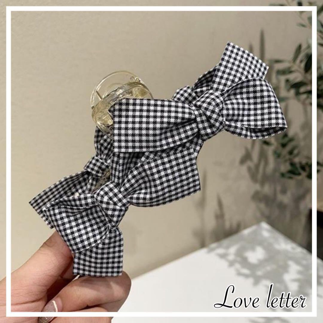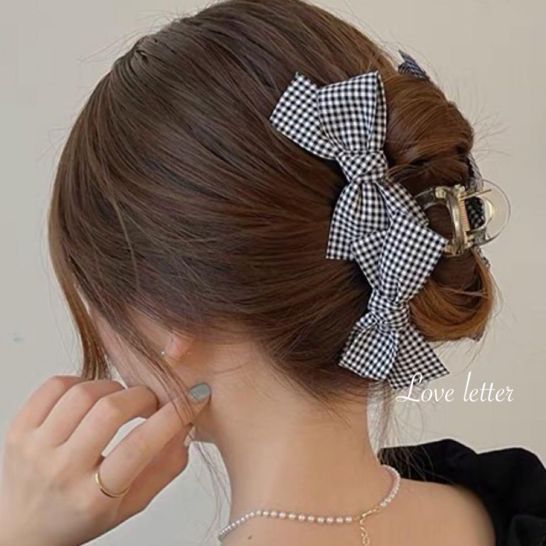 チェック柄リボンバンスクリップ 韓国 量産型 地雷 ヘアクリップ