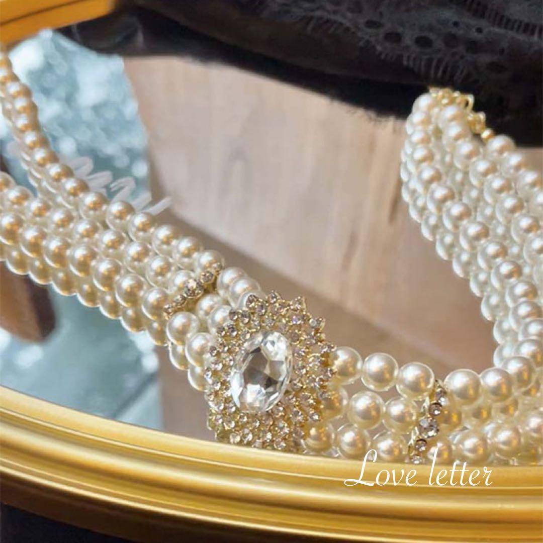 パールビジュー3連チョーカーネックレス 韓国 量産型 ブライダル