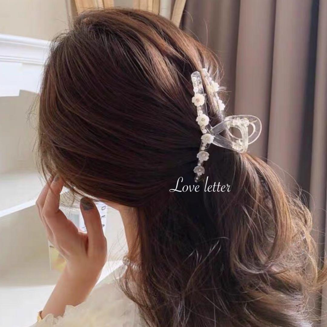 フラワーパールビジューバンスクリップ 韓国 花 量産型 地雷