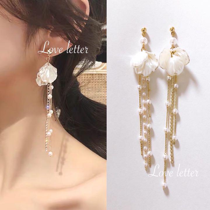 マーメイドシェルパールビジューロングピアス イヤリング 韓国 人魚姫 量産型