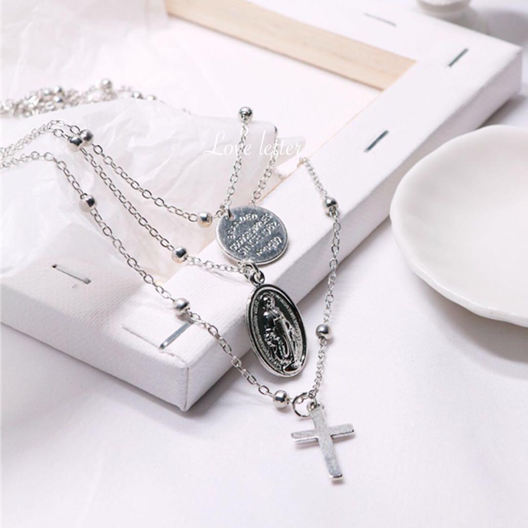 十字架コイン3連チョーカーネックレス 韓国 量産型 地雷 病み