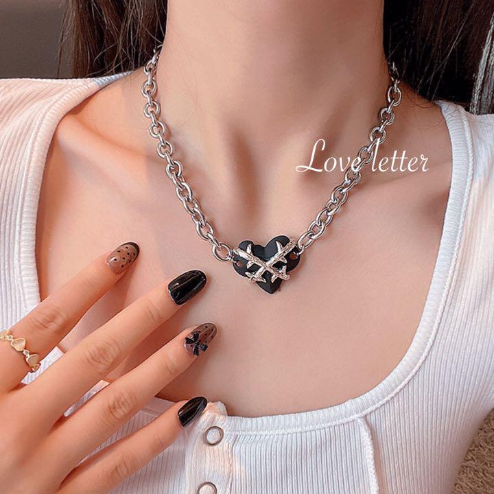 ブラックハートチョーカーネックレス 韓国 地雷 パンク 量産型 サブカル