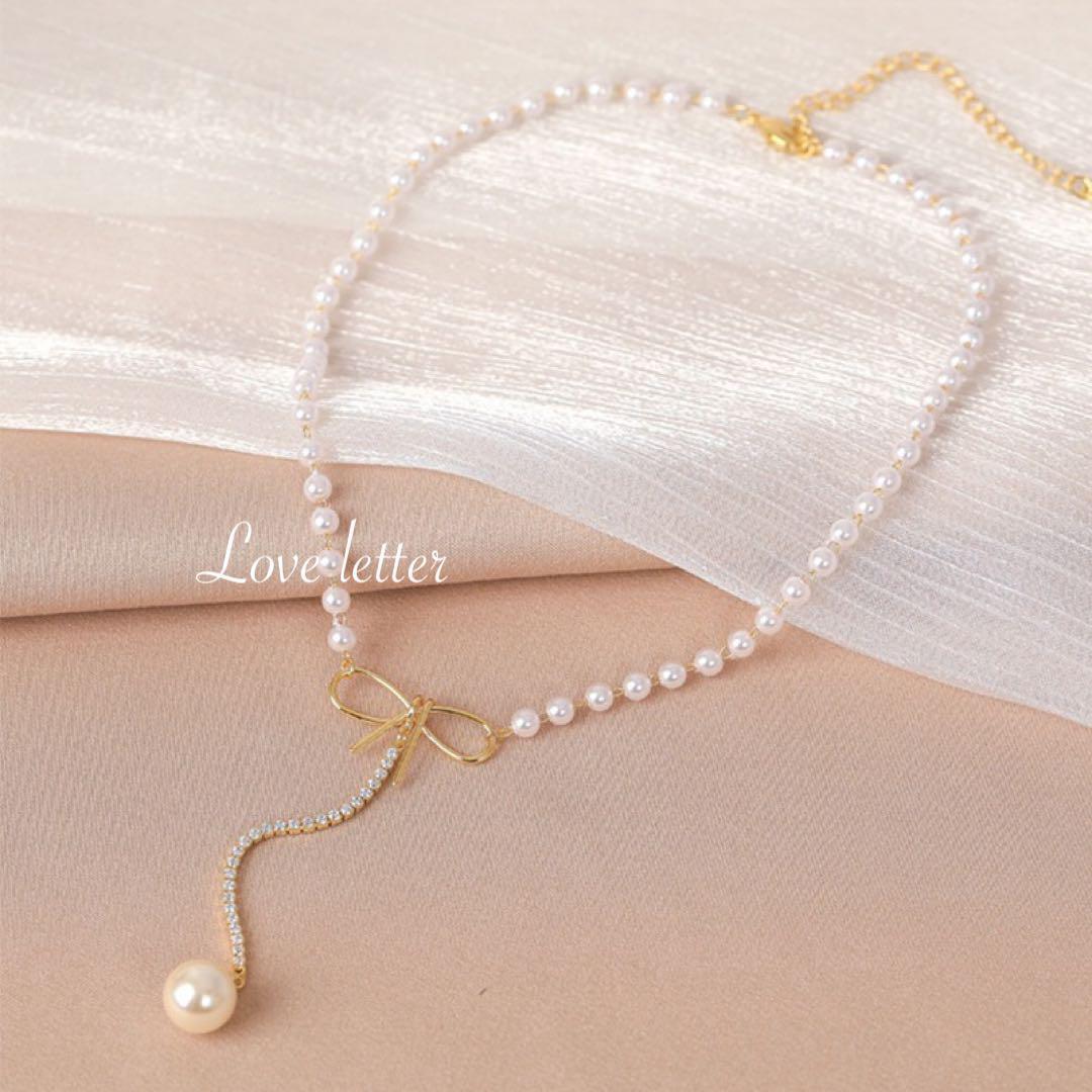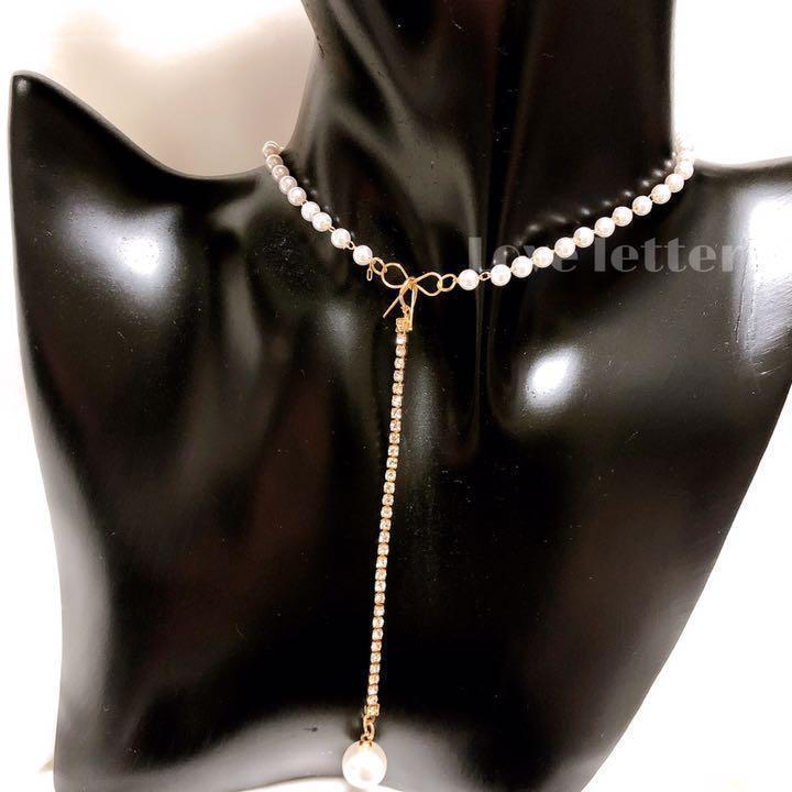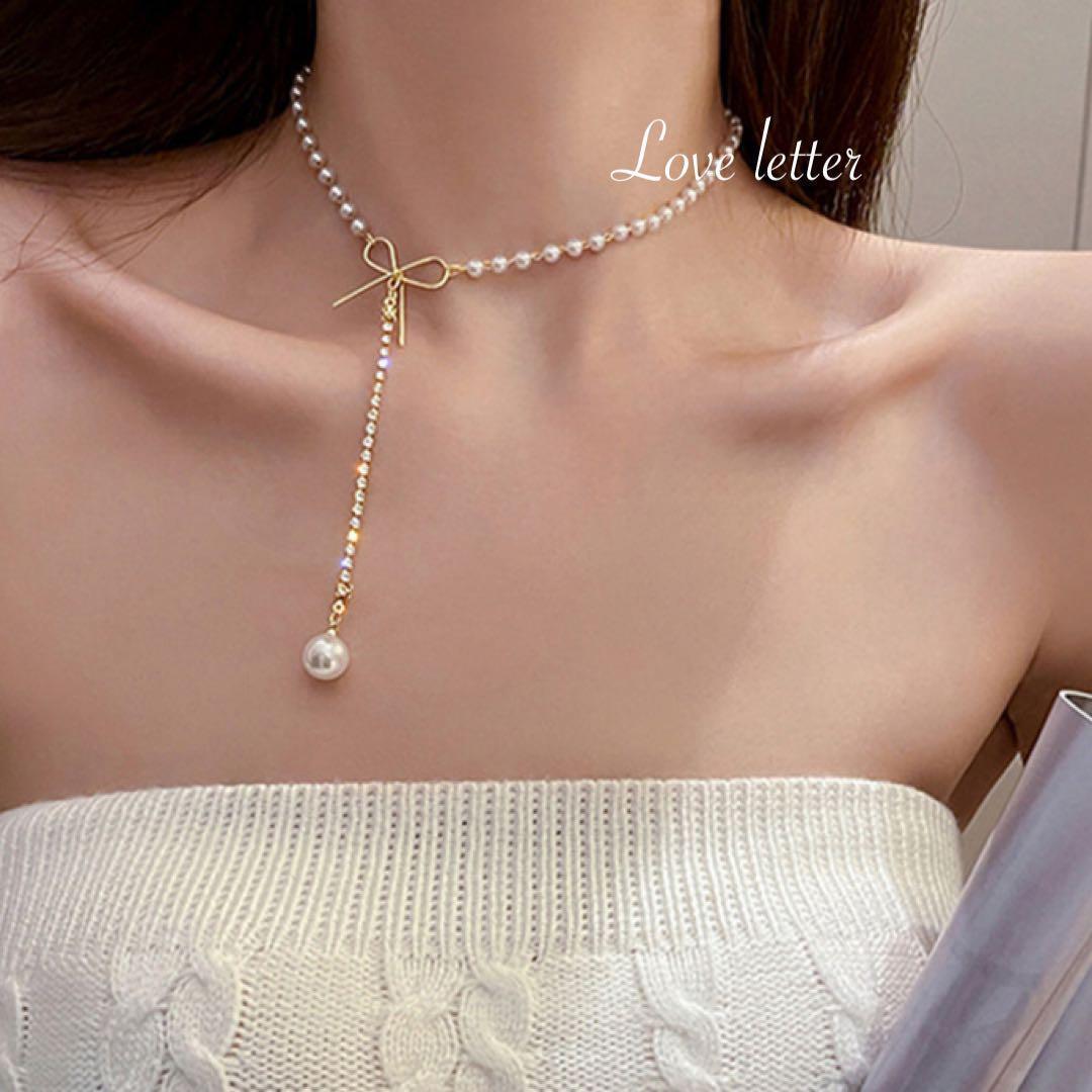 パールリボンチョーカー ネックレス 韓国 量産型 地雷 春夏