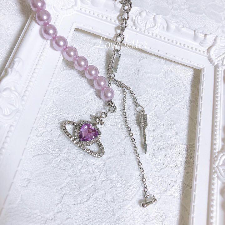 ハート惑星パールネックレスチョーカー 韓国 量産型 地雷