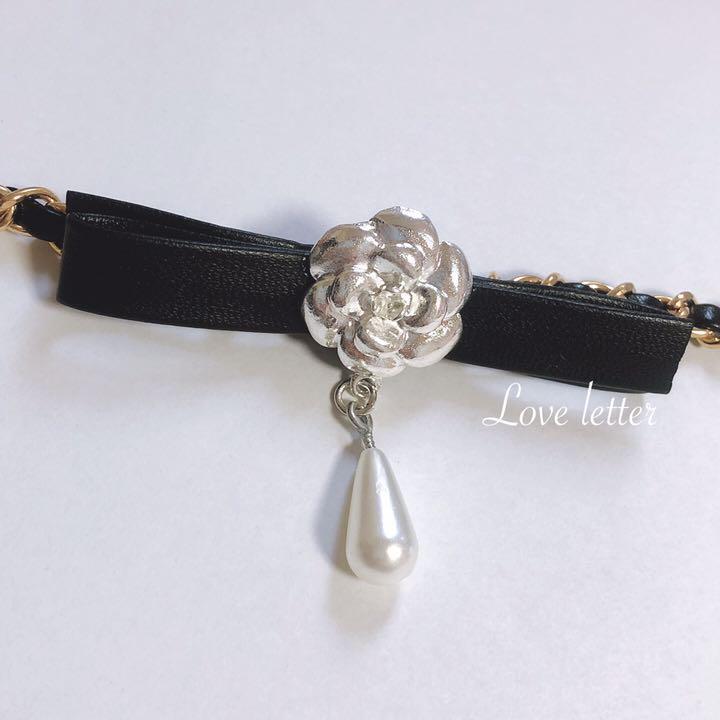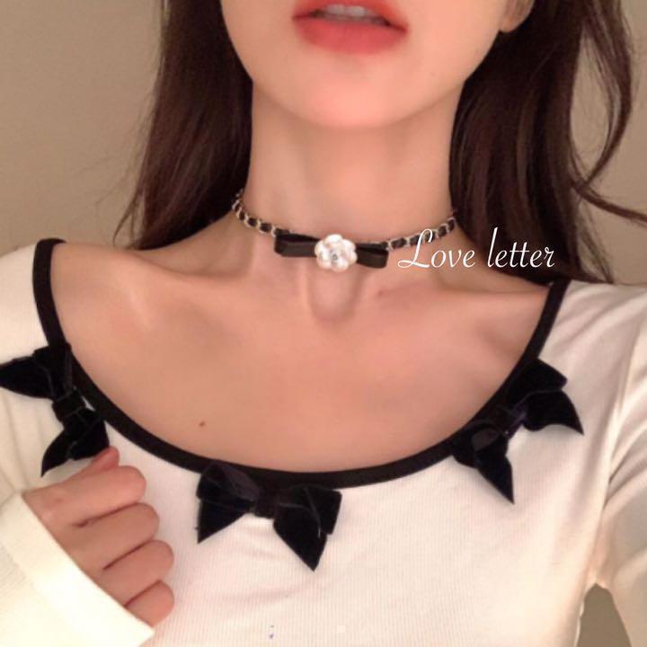 シルバーローズパールリボンチョーカーネックレス 韓国 量産型 地雷