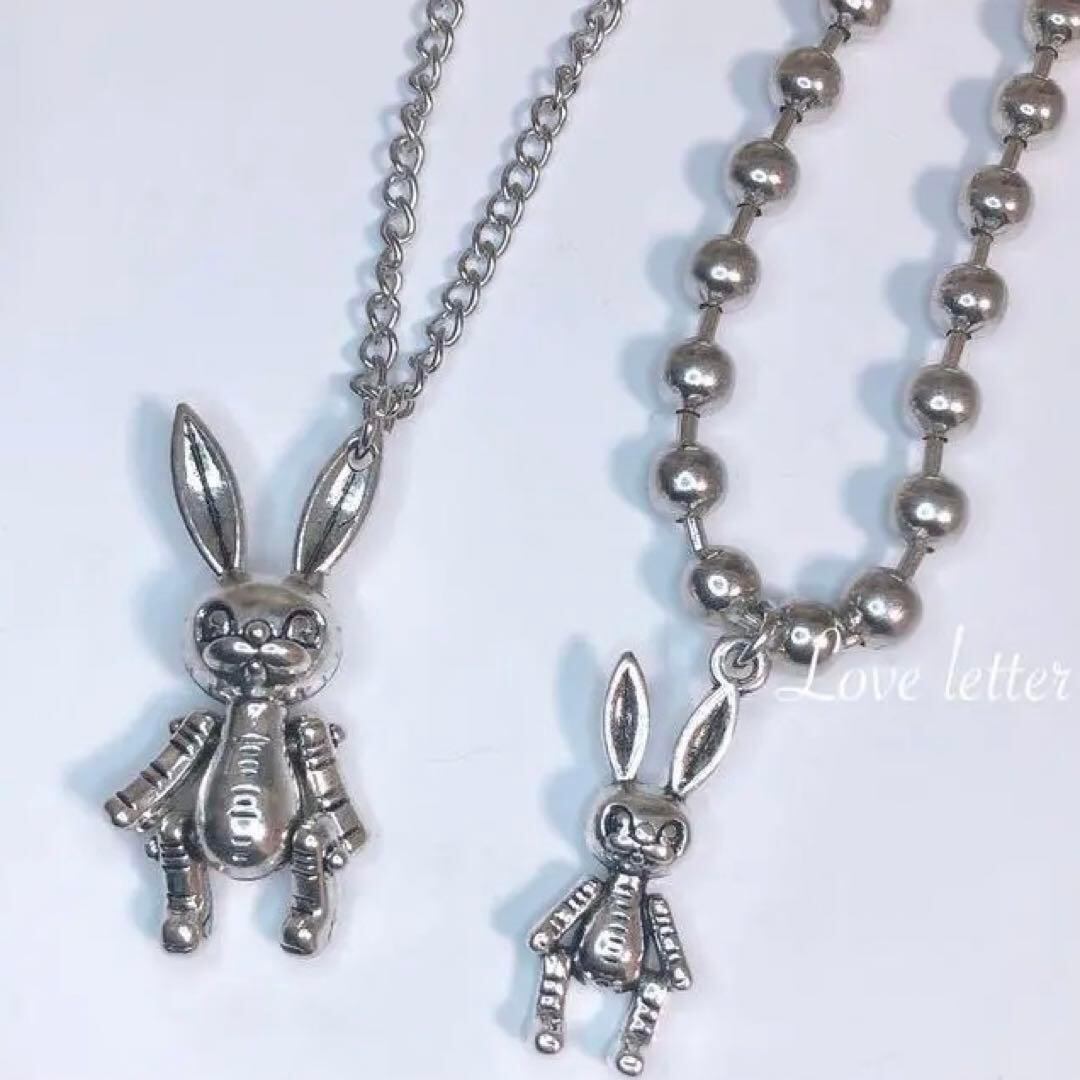 ラビットチェーンネックレス2点set 韓国 量産型 地雷 パンク