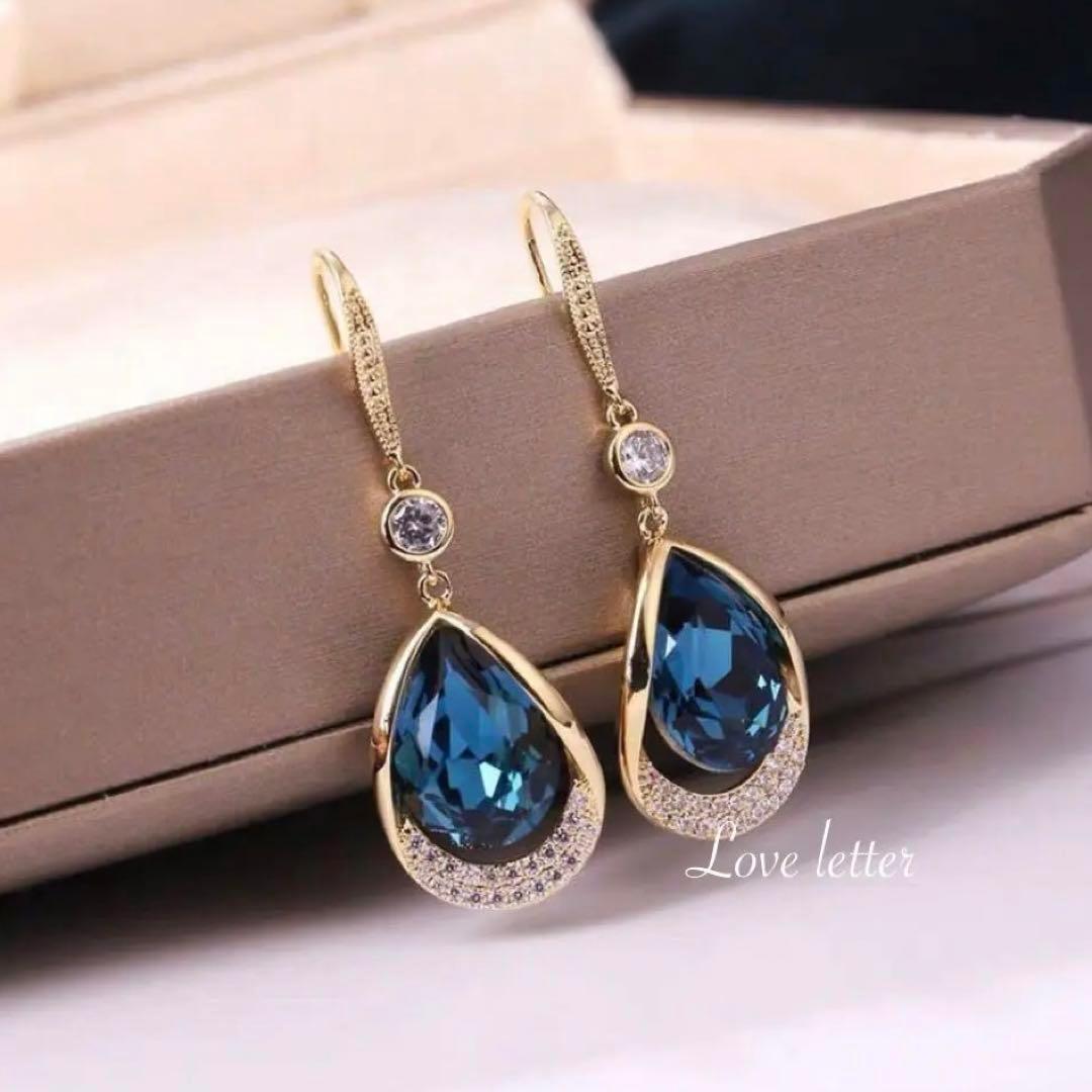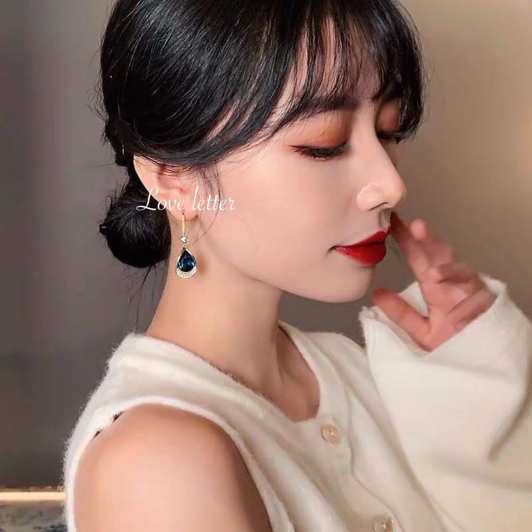 ネイビーブルービジューピアス 韓国 上品 高見え 量産型