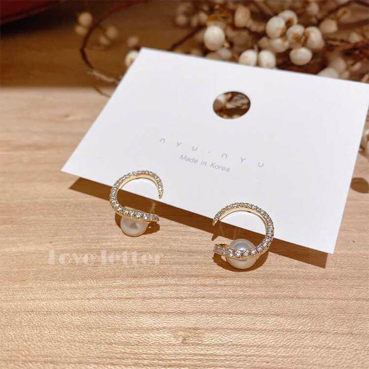 C型のキラキラ輝くビジューに下からパールがチラ見せのデザインです♫