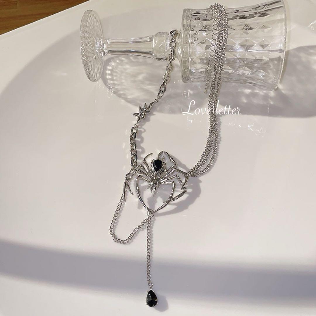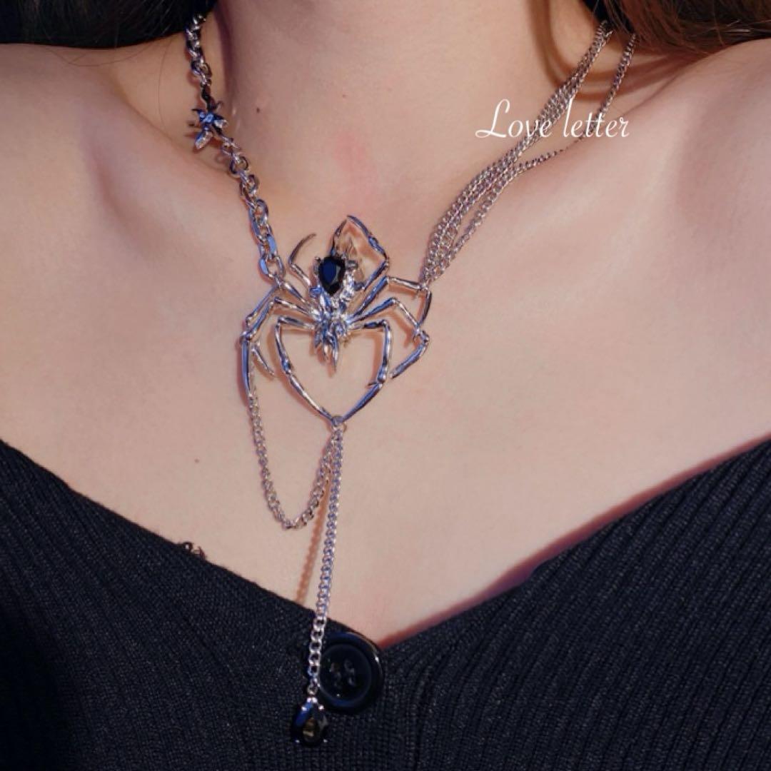 スパイダービジューチョーカーネックレス 韓国 蜘蛛 地雷 パンク