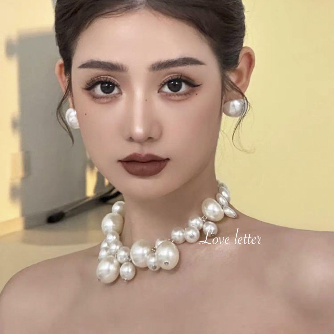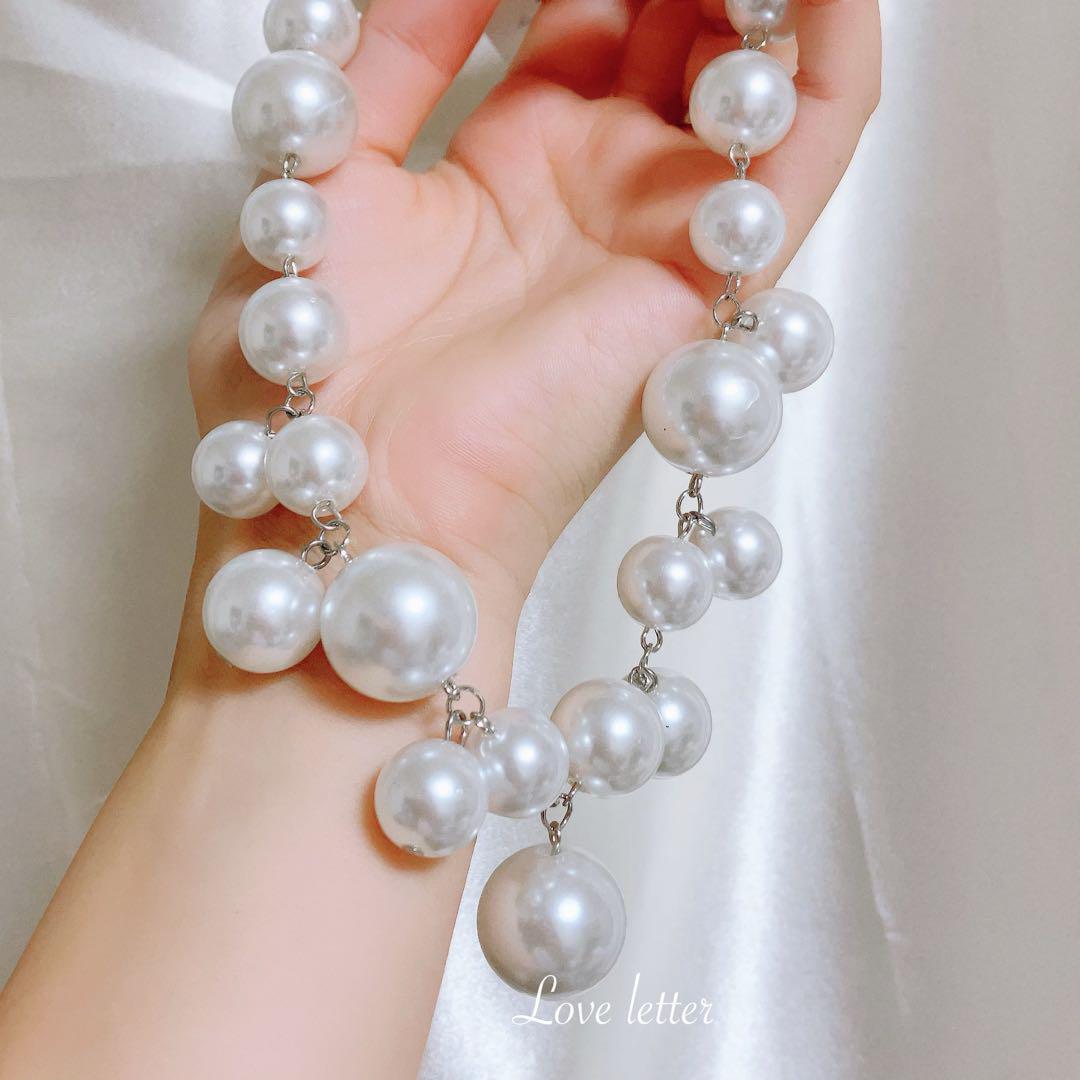 ミックスサイズパールチョーカーネックレス 韓国 上品 パーティー