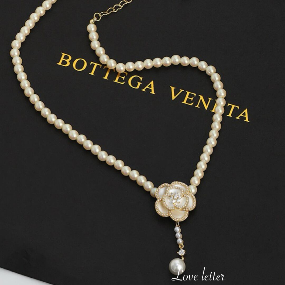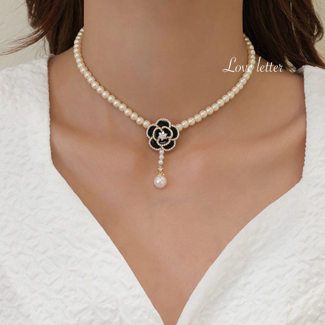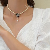 アンティークローズパールビジューネックレス 黒 白 韓国 薔薇 上品