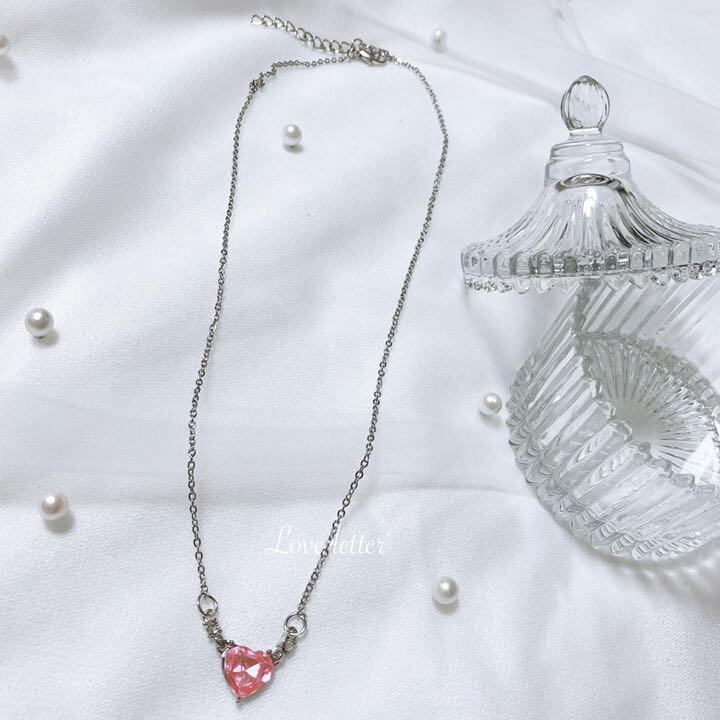 キラキラピンクハートビジューネックレス ピンク 韓国 量産型 地雷 春夏秋冬