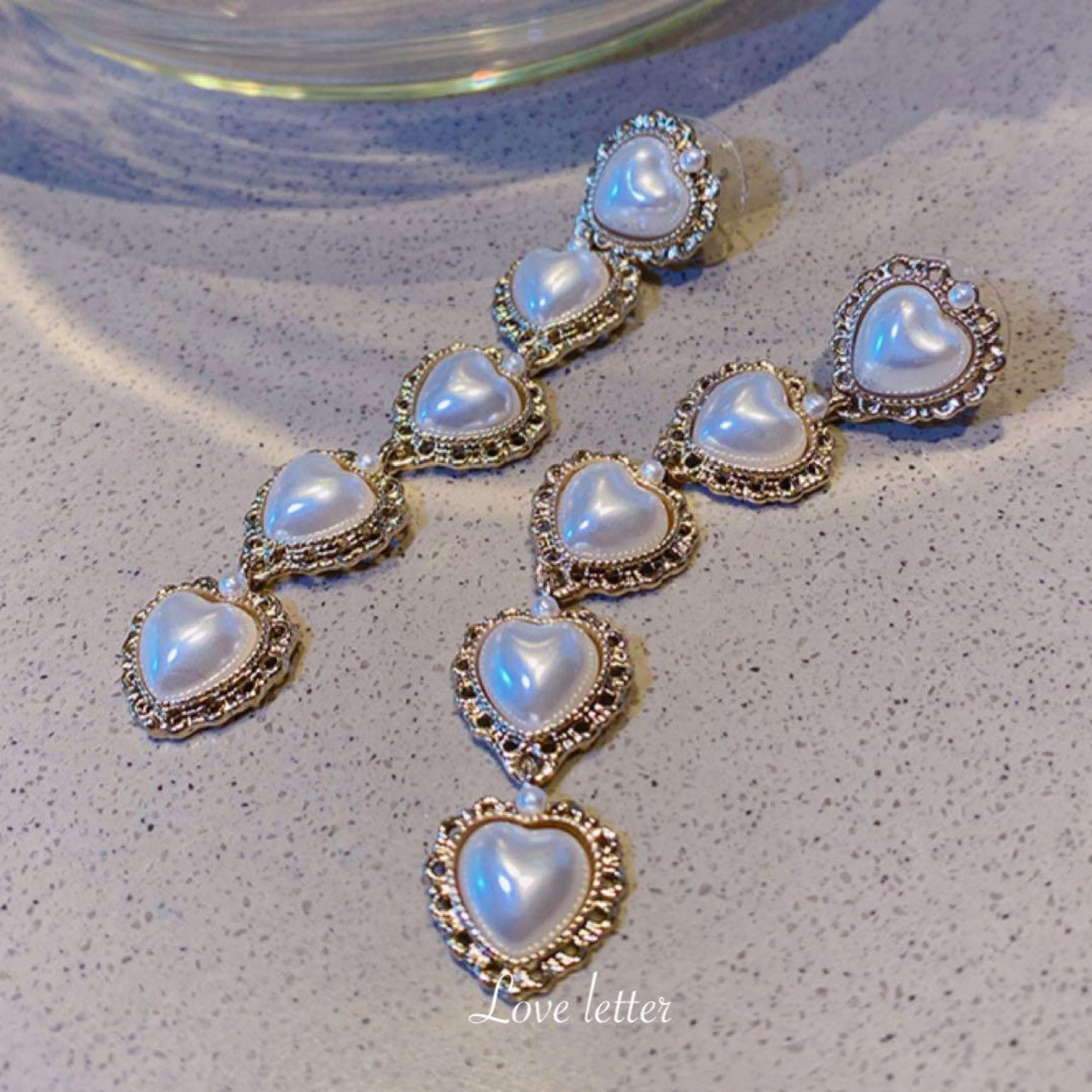 パールハートロングピアス ゴールド 韓国 量産型 地雷コンカフェ