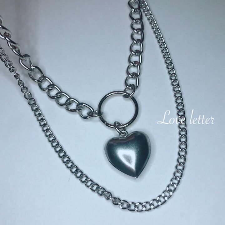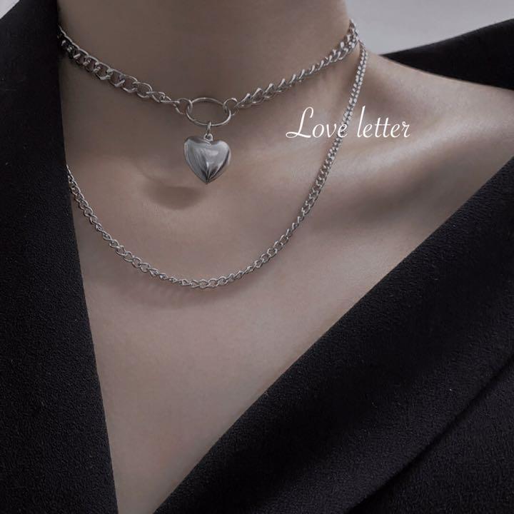 地雷ハート2連チェーンチョーカーネックレス 韓国 量産型 シルバー
