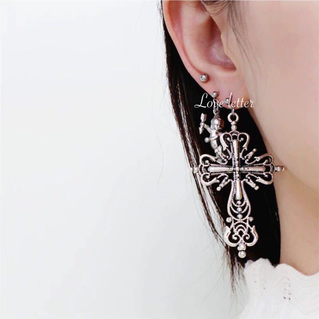 アンティーククロスピアス イヤリング 十字架 韓国 地雷 パンク 病みかわ