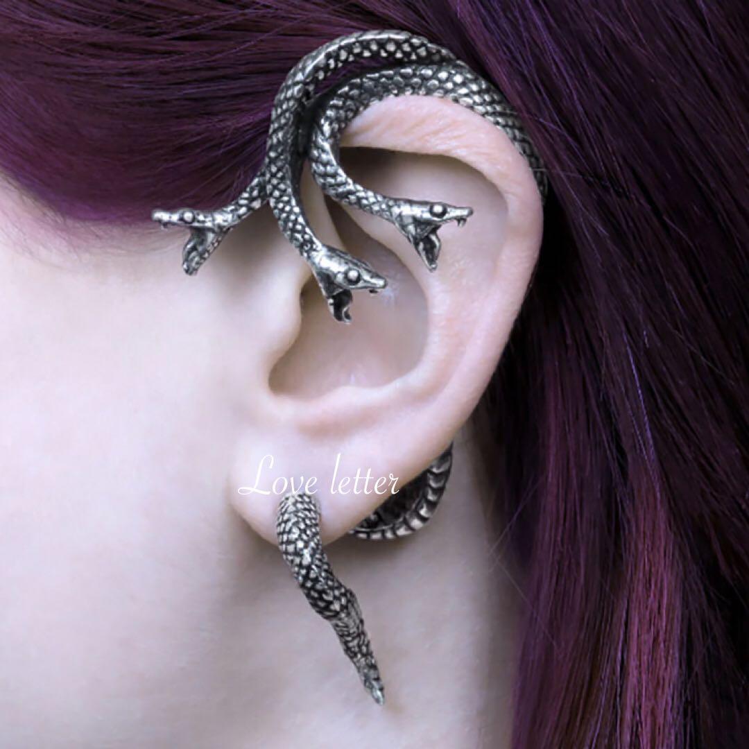 シルバースネークイヤーカフ型片耳ピアス 韓国 地雷 パンク 蛇